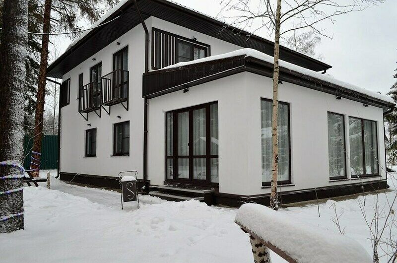 Коттедж Покров-2. Дом на двух этажах комфортно вмещает в себя 10-12 человек. Состоит из 5 закрытых спален, выполненных в разном стиле, входной группы, гостиной, объединённой с кухней и большим банкетным залом с панорамным остеклением.