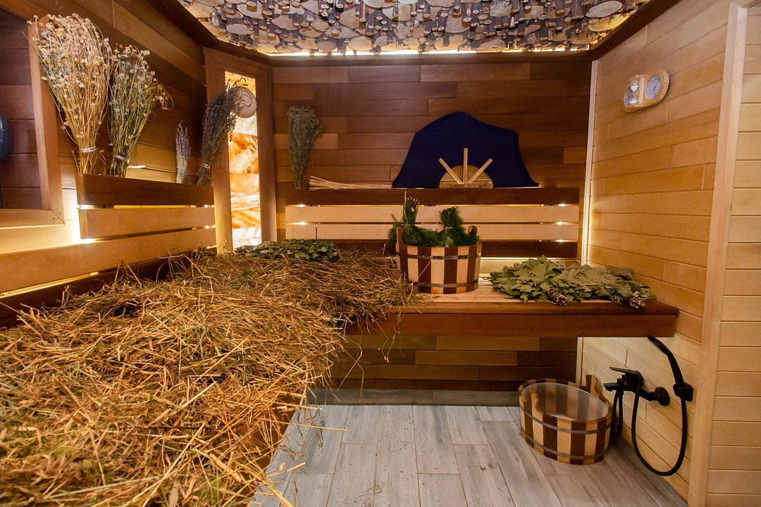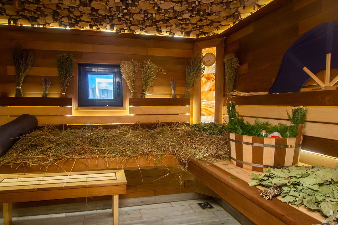 Парение в Банном чане сравнимо с парением в бане, но имеет некоторые отличия и преимущества: тепло распределяется снизу вверх, позволяя телу прогреваться равномерно, при этом сохраняя голову на свежем воздухе. Такое парение укрепляет иммунитет, восстанавливает силы и повышает настроение. Стоимость — 5000 ₽.