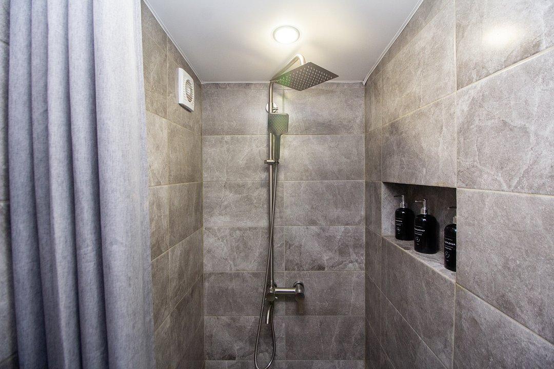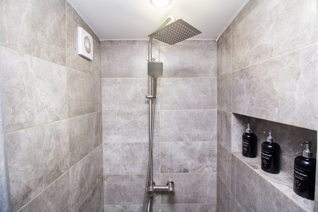 В бане предусмотрены все необходимые удобства: туалет и душ, чтобы гости могли почувствовать себя максимально комфортно и на отдыхе, и в процессе.