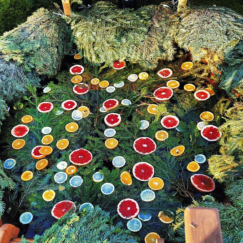 В пихтовой хвое содержатся фитонциды — вещества, подавляющие рост бактерий, а также вещества, способствующие заживлению ран, профилактике болезней бронхов и устранению головной боли. Цитрусовые (грейпфрут, апельсин, помело) повышают иммунитет, полезны для сердца, являются профилактикой простуды благодаря высокому содержанию витамина C. Они являются антиоксидантами, то есть защищают клетки человека от повреждения и старения. Во время нахождения в чане полезные вещества из хвои и цитрусовых испаряются и дают эффект ароматерапии. Сочетание пихты и цитрусовых улучшает состояние кожи, а также дарит заряд энергии. Стоимость — 7000 ₽. Чан с двойным наполнением — в два раза больше пихты и цитрусовых +2 000 ₽.