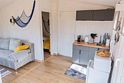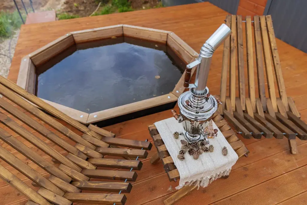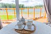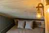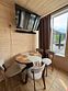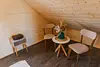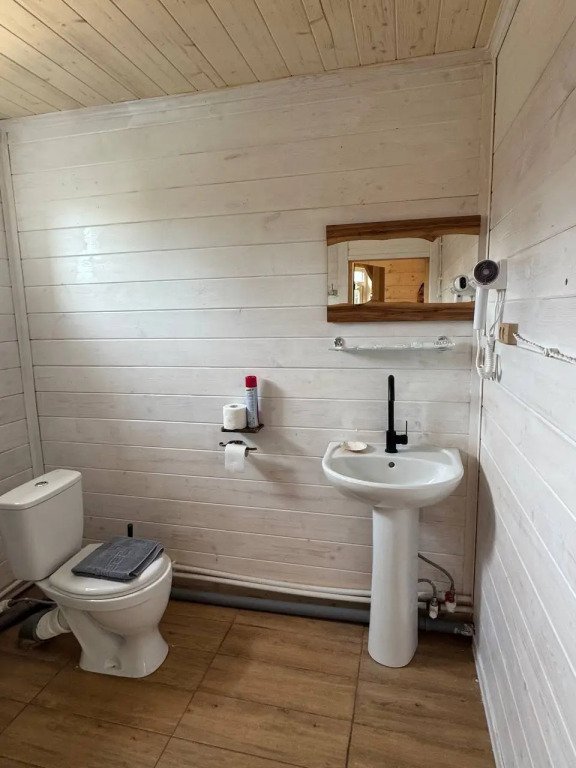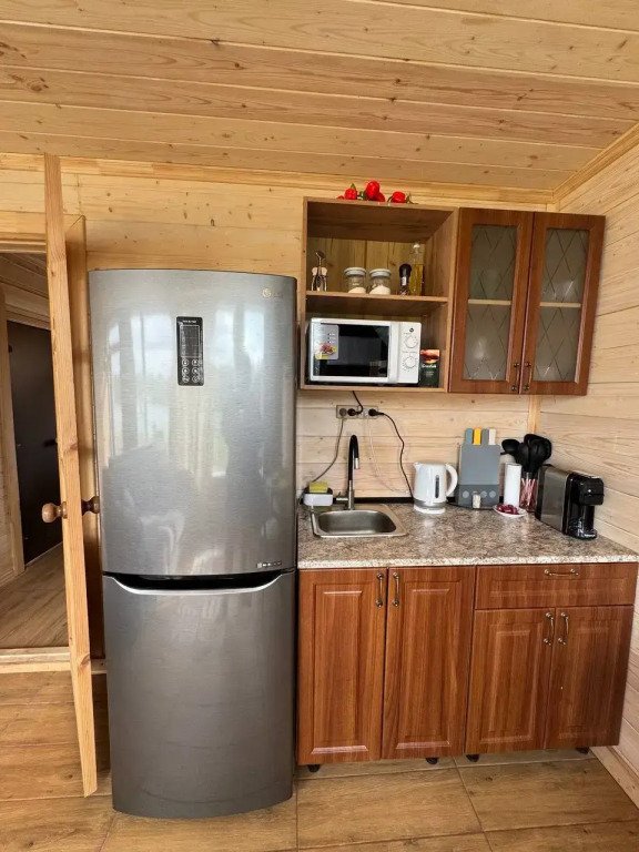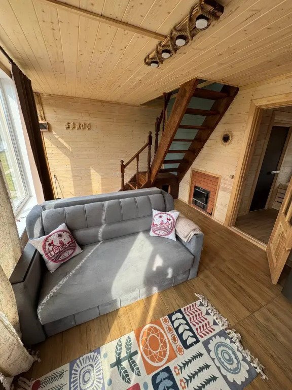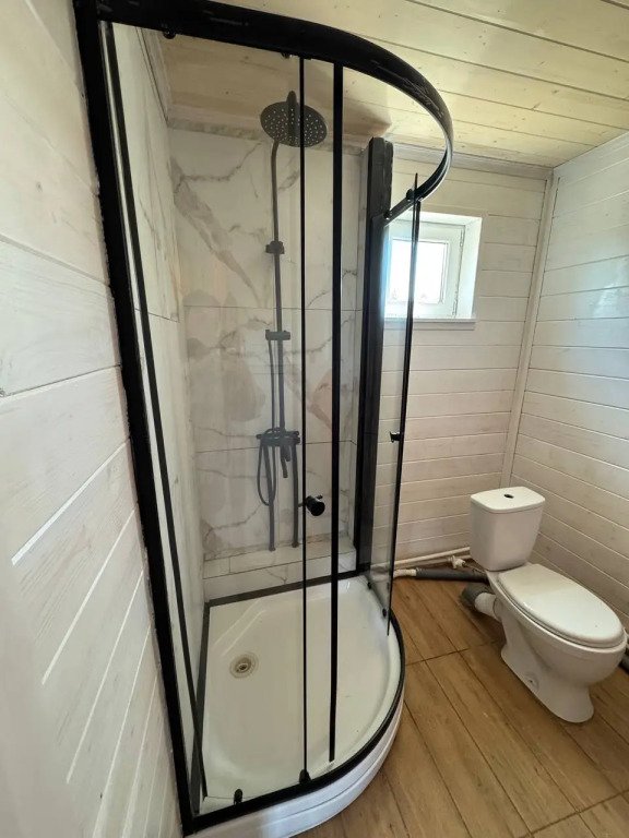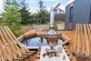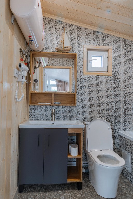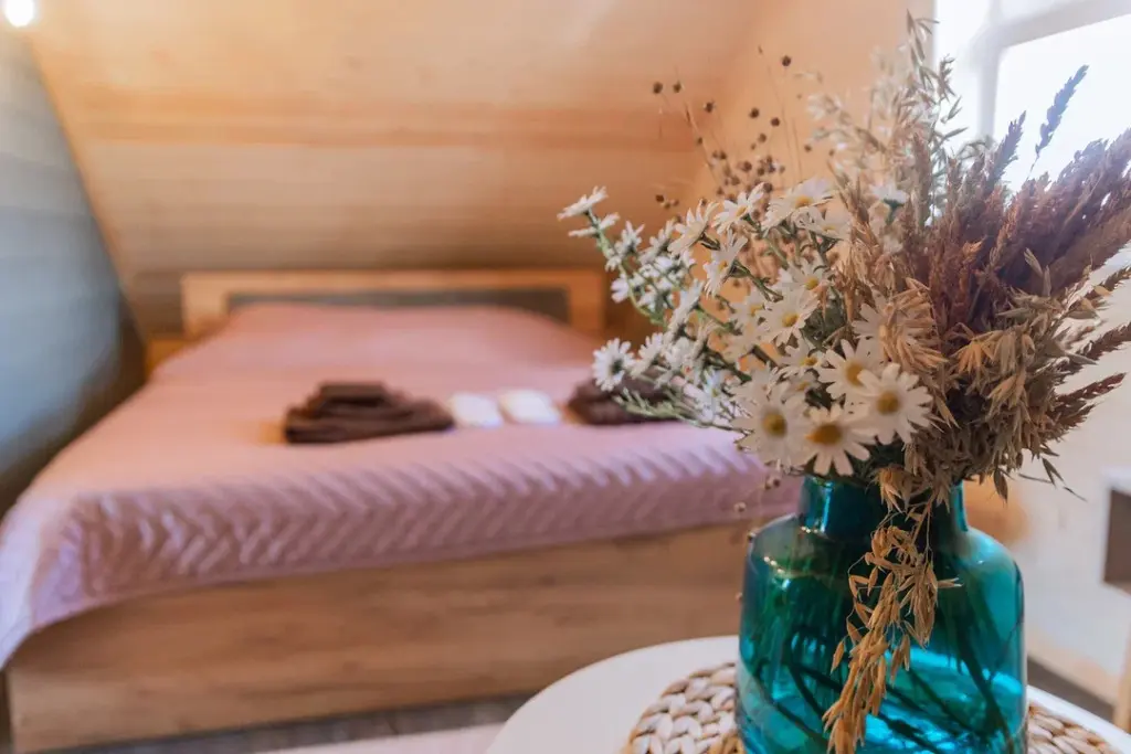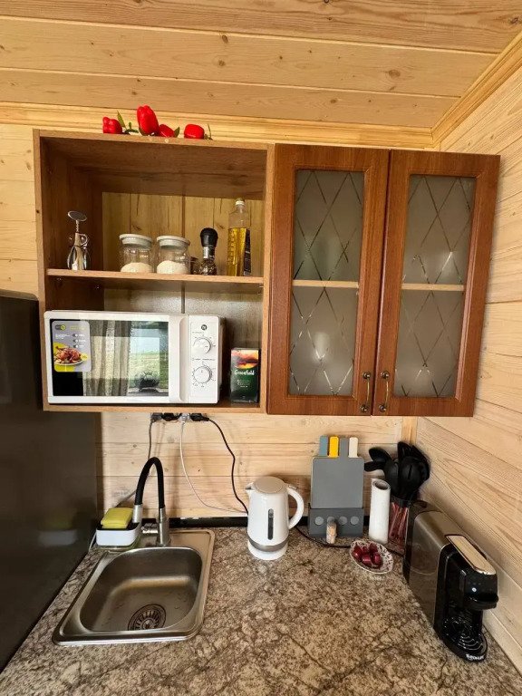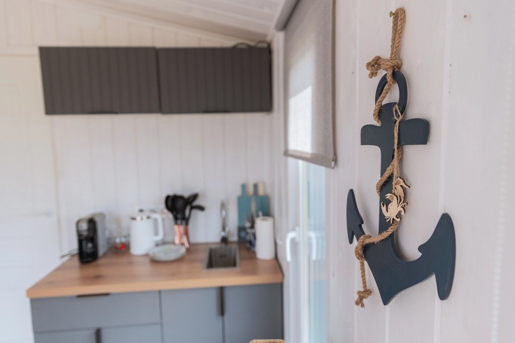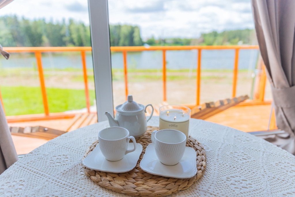 Глэмпинг представляет собой деревянные дома, рассчитанные на двоих или компанию до 6 человек. В каждом доме есть спальни, гостиная с диваном и обеденной зоной, полностью оборудованная кухня с плитой, холодильником, чайником, капсульной кофемашиной, телевизор. В распоряжении гостей полотенца, халаты, тапочки.