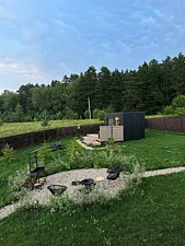 На открытой территории в распоряжении гостей участок площадью девять соток, где можно наслаждаться свежим воздухом и красивыми пейзажами. Завтрак на террасе, солнечные ванны и ужин на мангале — это лишь некоторые из способов провести время на улице. Завершите день, расположившись на удобных креслах у костра, любуясь звездным небом. Также предусмотрено видеонаблюдение на входной группе для безопасности, что позволяет расслабиться и наслаждаться отдыхом без лишних забот.