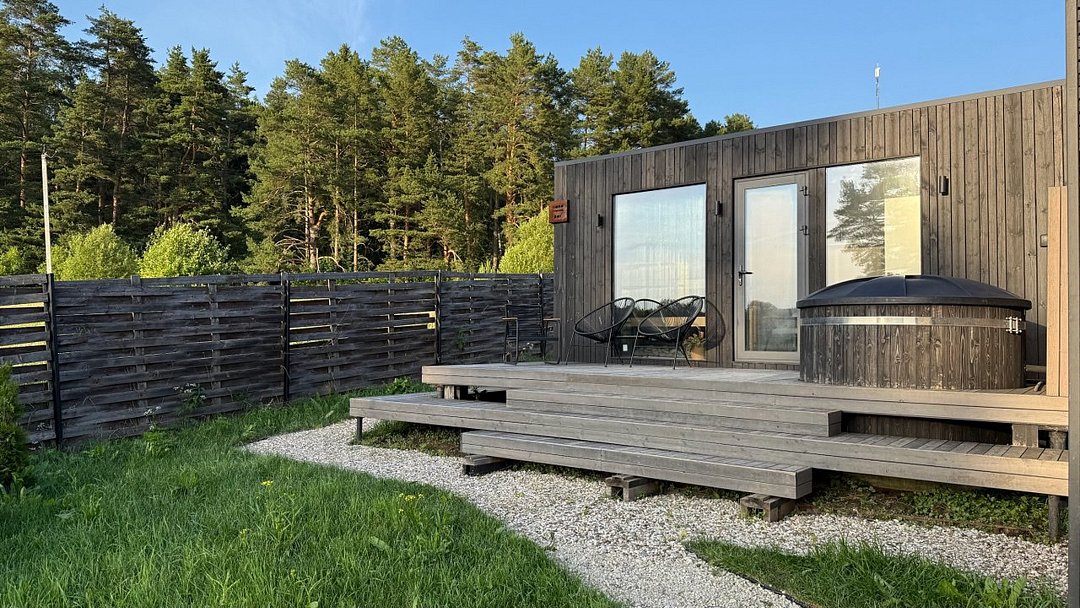 Внутри дома вы найдете три отдельные спальни, просторную кухню-гостиную с удобным диваном-кроватью, санузел с ванной, большую террасу с видом на участок, полностью оборудованную кухню, бытовую технику, посуду, чистое постельное белье, полотенца и необходимые принадлежности, а также телевизор со встроенной Алисой для управления музыкой.