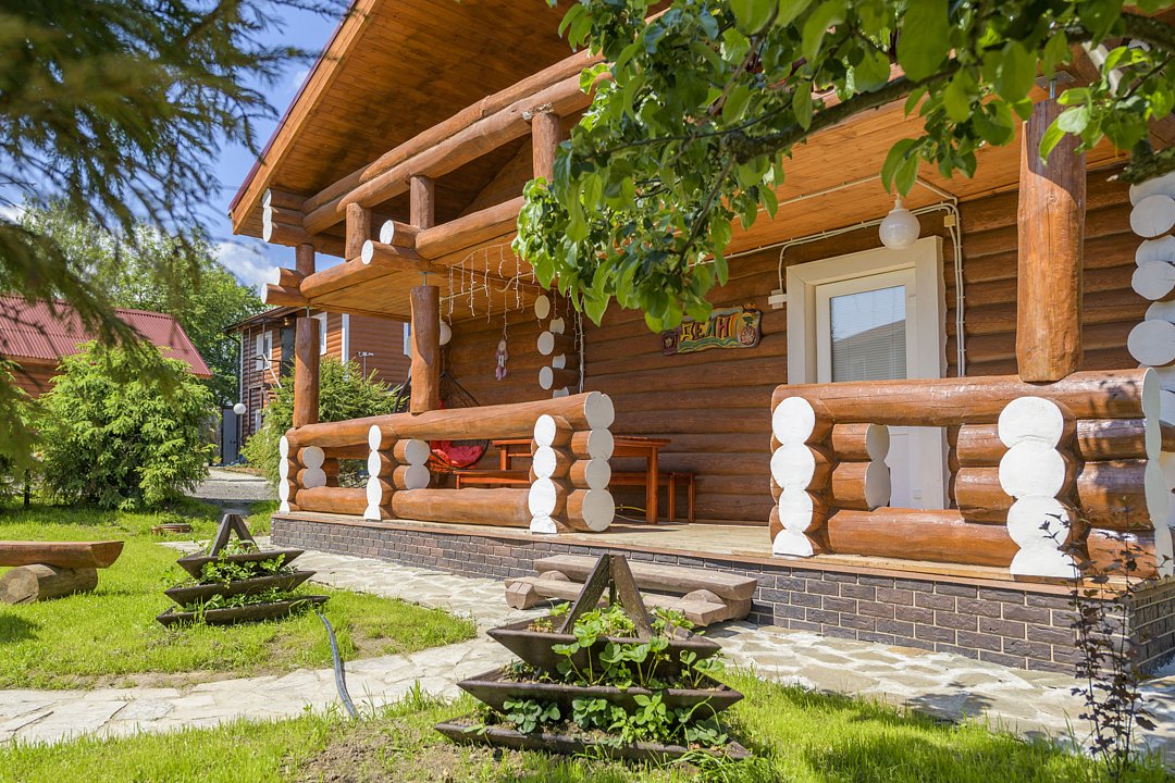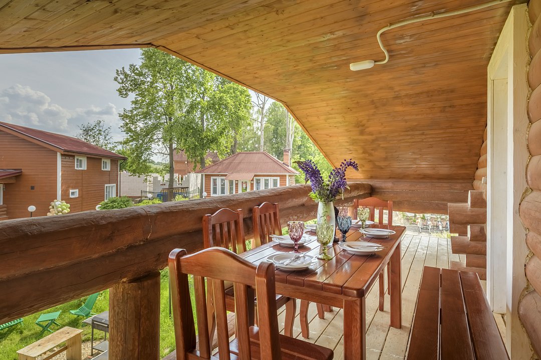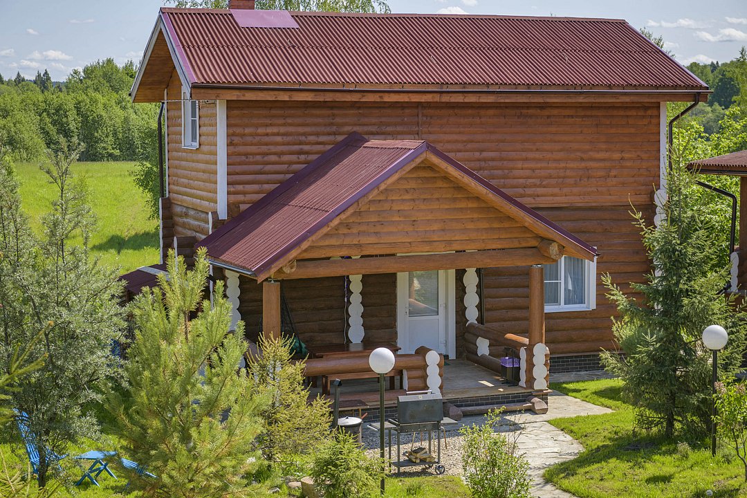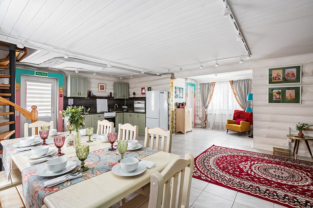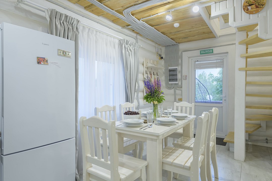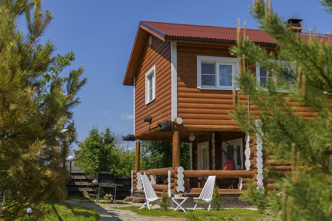 Большой и уютный дом «Санкт-Петербург» площадью сто восемьдесят квадратных метров в гостевом комплексе «Кикино на Веле». Дом двухэтажный, с открытой верандой. Дом рассчитан на четырнадцать гостей (включая детей старше трех лет).