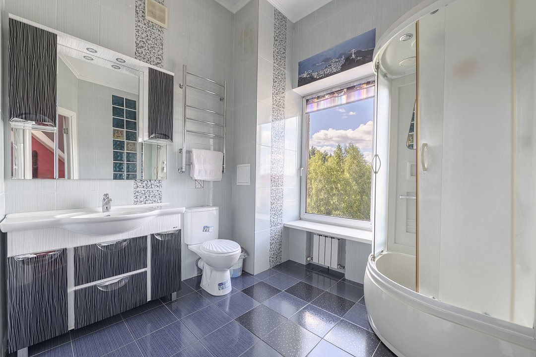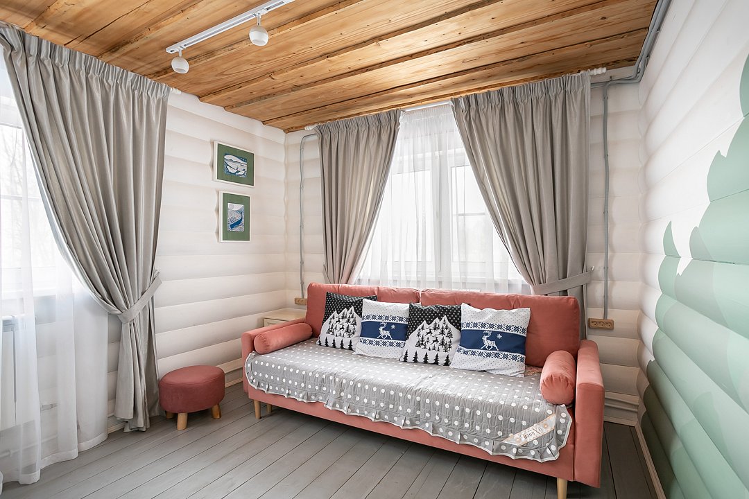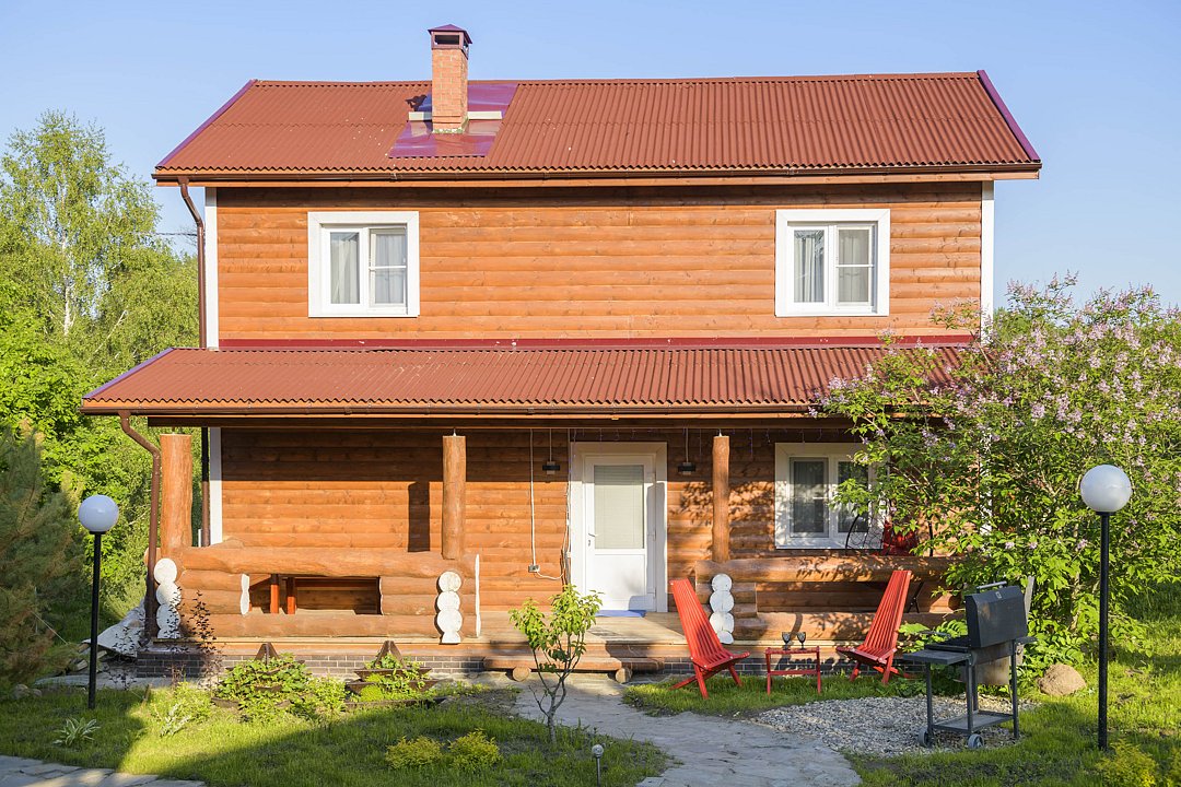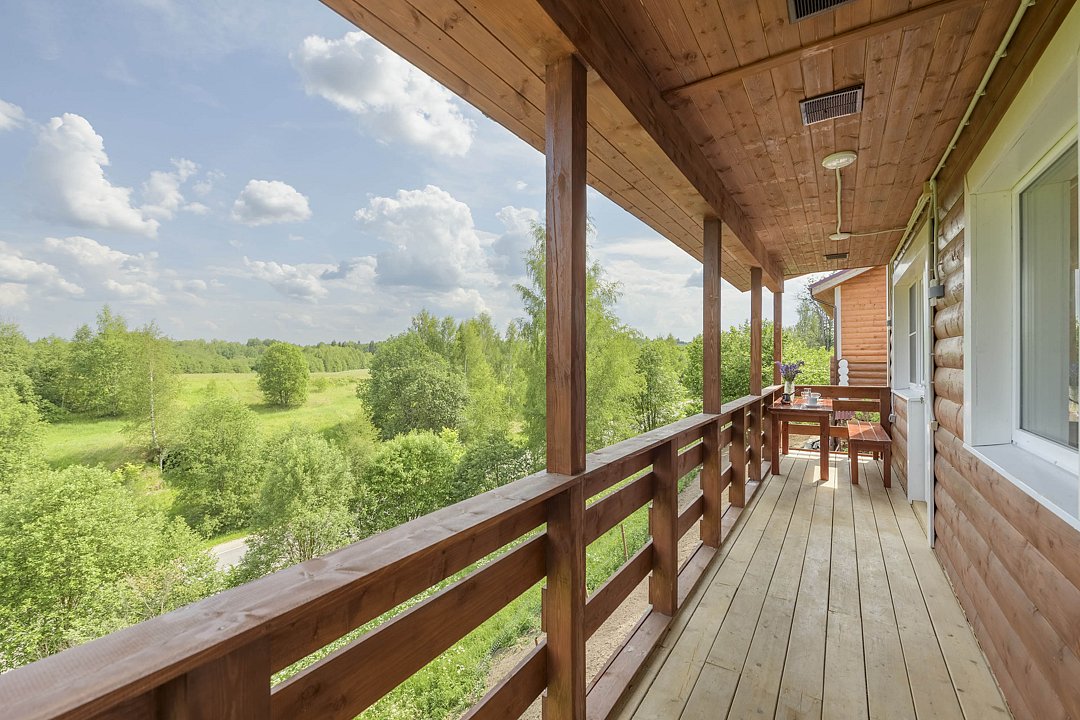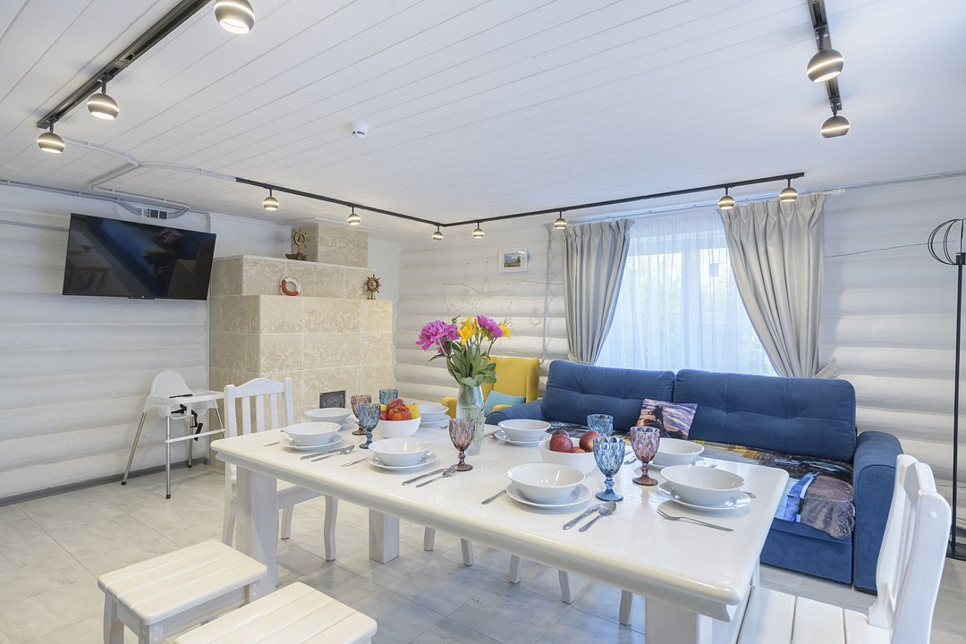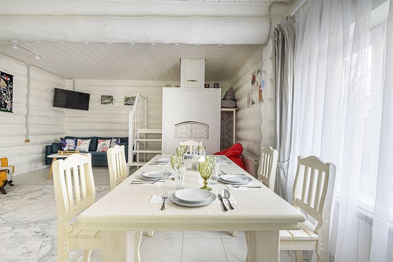 Большой и уютный дом «Санкт-Петербург» площадью сто восемьдесят квадратных метров в гостевом комплексе «Кикино на Веле». Дом двухэтажный, с открытой верандой. Дом рассчитан на четырнадцать гостей (включая детей старше трех лет).