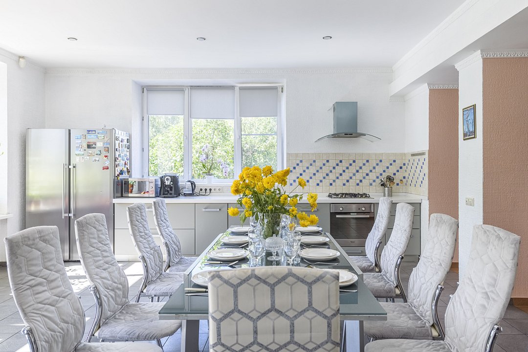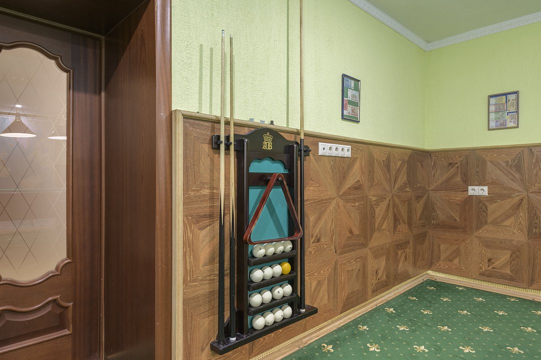 В доме есть русский бильярд, настольный теннис; кухня со всей необходимой техникой: посудомоечная машина, кофе-машина, духовой шкаф; камин на дровах. Посуда для банкетов, белье предоставляется. Парковочное пространство на восемь машин.