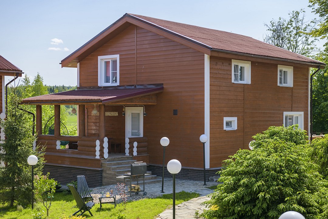 Сдается двухэтажный гостевой дом с открытой верандой «Ереван» 136 м² в гостевом комплексе «Кикино на Веле», расположенном в Подмосковье между городами Дмитров и Сергиев Посад!