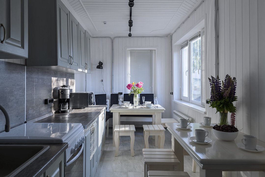 В распоряжении гостей кухня со всем необходимым: свч, кофе-машина, чайник, посудомоечная машина, обеденная зона. Белье, посуда предоставляется. Открытая веранда, есть личная мангальная зона с принадлежностями для мангала и барбекю.