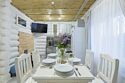 Подходит для банкетов и проведения мини-свадеб. Комфортное размещение шестнадцати человек. Банкет – до двадцати двух человек.