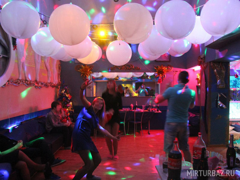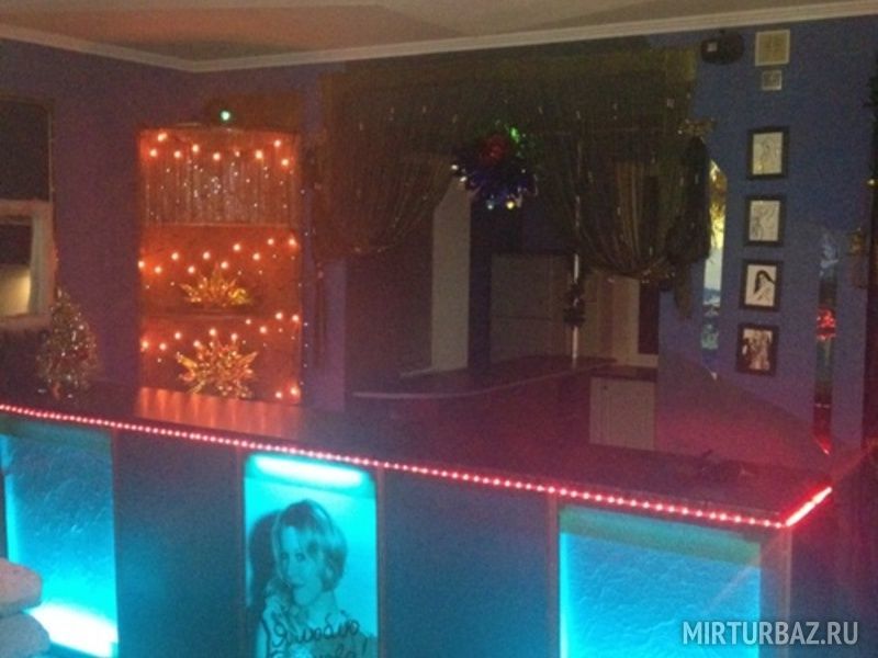 Световые эффекты (лазеры, сканеры, дымовой эффект), музыкальное оборудование мощностью 2,5 КВ (возможность прослушивания круглосуточно).