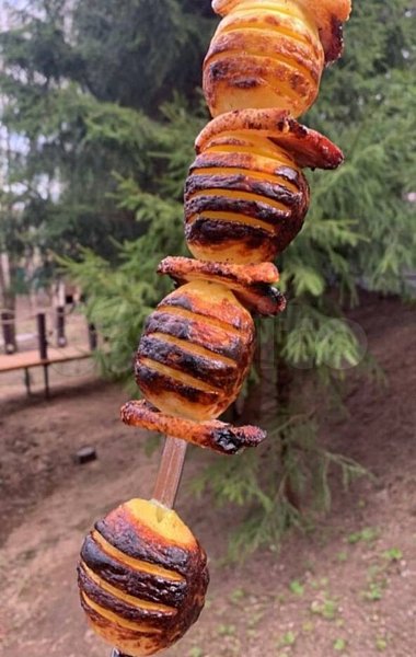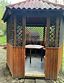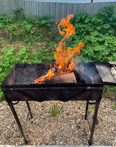 Мангальная зона с садовой мебелью для комфортного отдыха на природе.