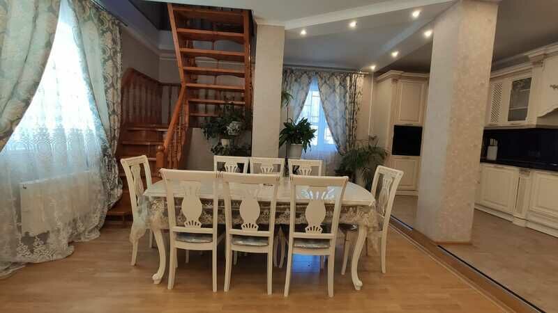Предлагается в аренду 2-х этажный коттедж площадью 160 м². В доме имеется все необходимое для комфортного отдыха и проведения праздников: бытовая техника (холодильник, посудомоечная и стиральная машина, духовой шкаф, плазменная панель, WI-FI). Коттедж включает 3 отдельные спальни на 2-м этаже и 2 спальных места в гостиной зоне.