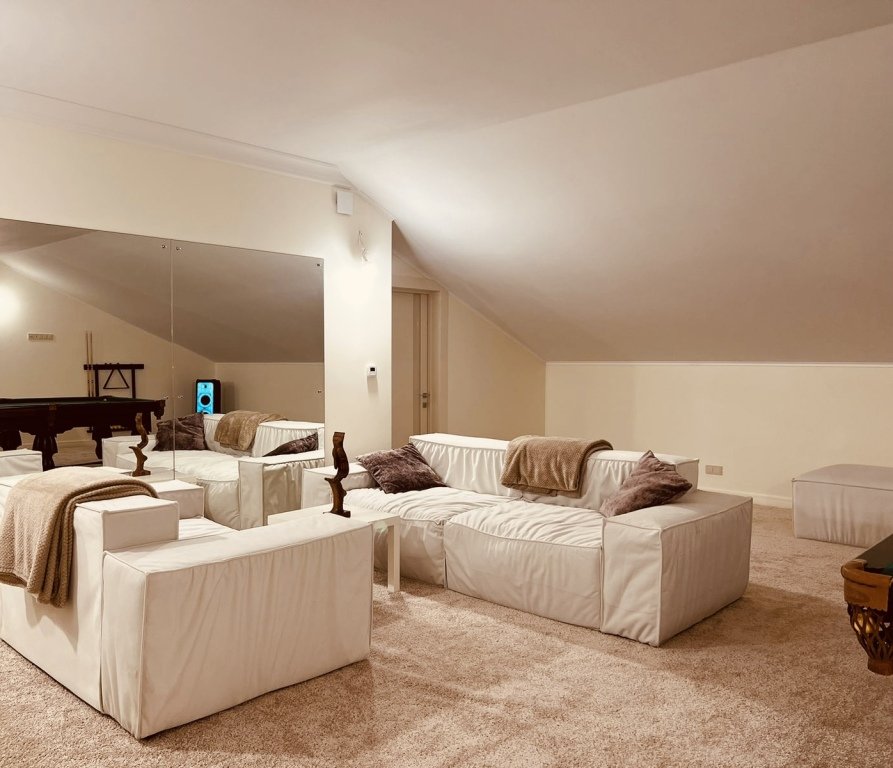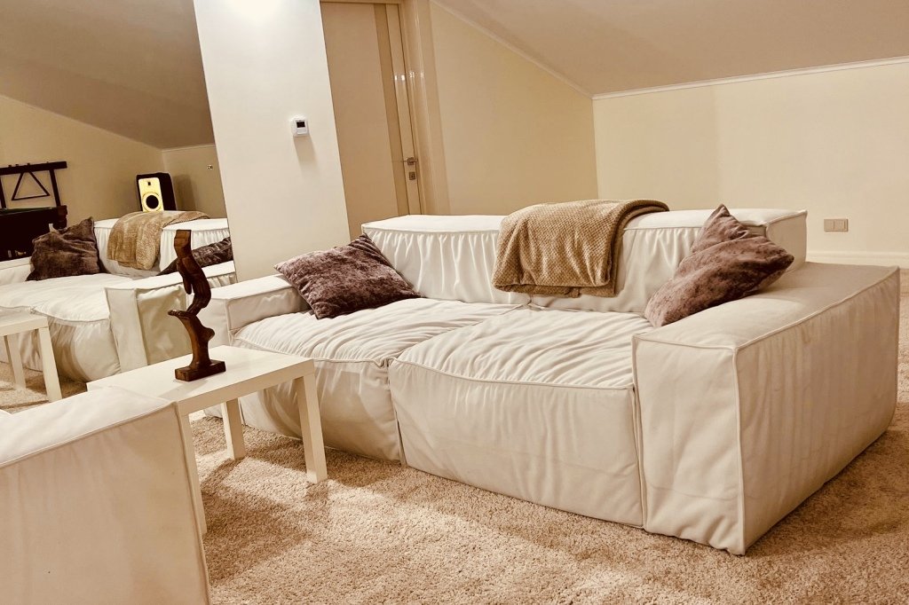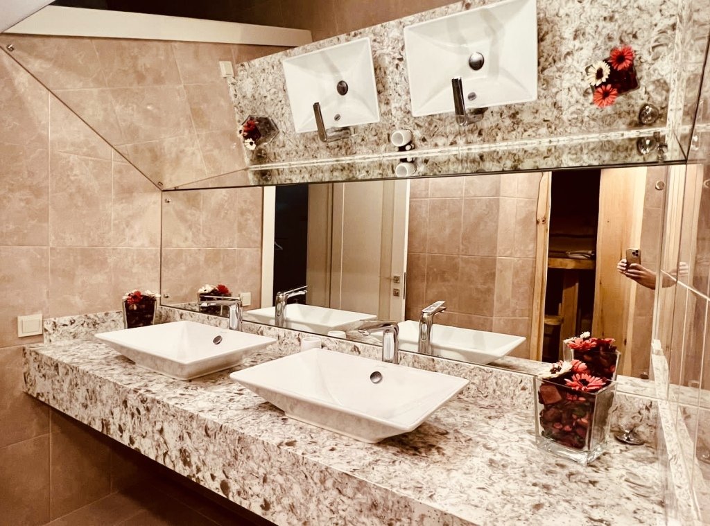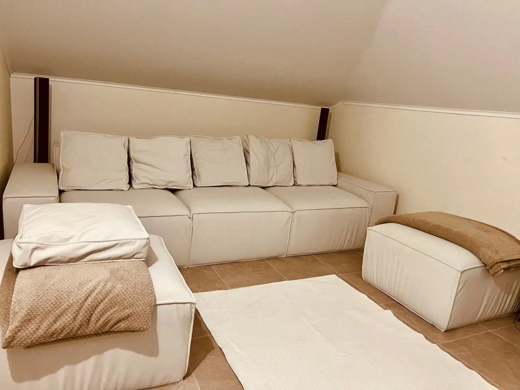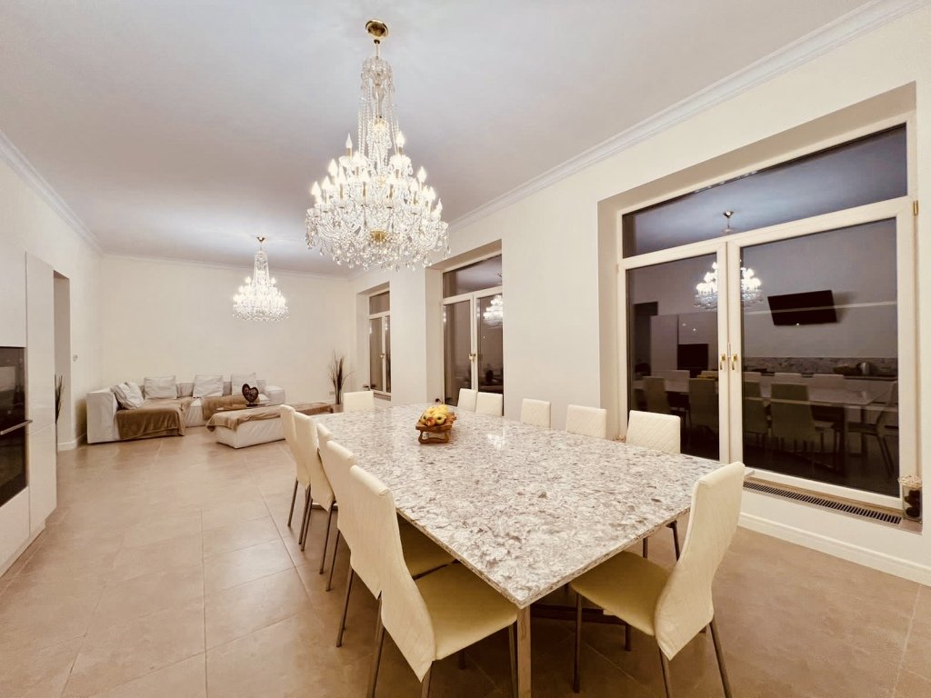 Коттедж состоит и 2 этажей, 440 кв. м. 1 этаж: кухня-гостиная с установленной техникой, столешница керамогранит, полы с подогревом. 3 спальни, 2 уборные, фильтрованная вода из крана. 2 этаж: 3 спальни, кедрово-соляная сауна, кинозал, бильярдный зал, 1 уборная.