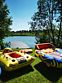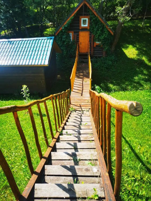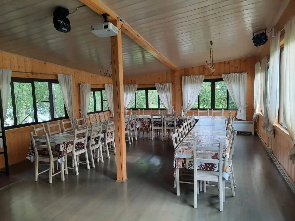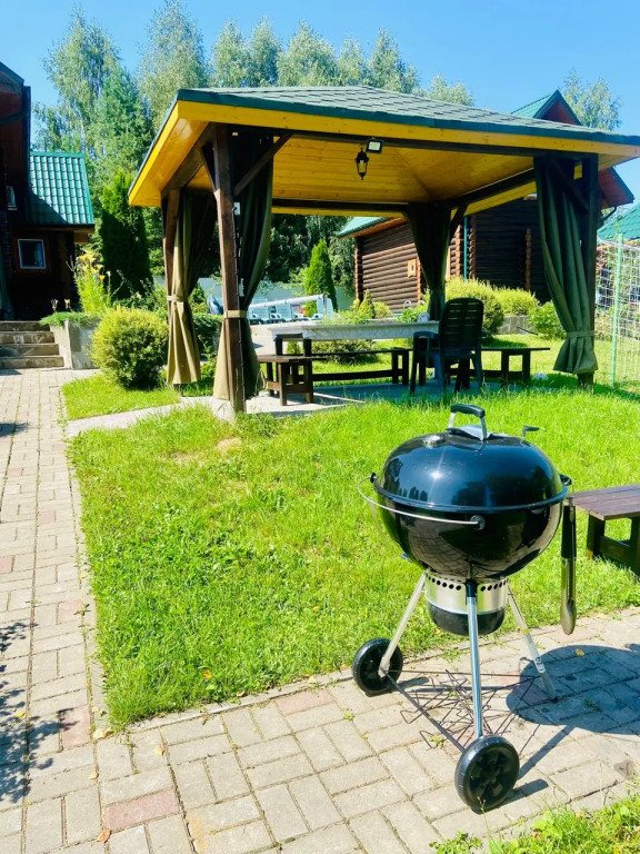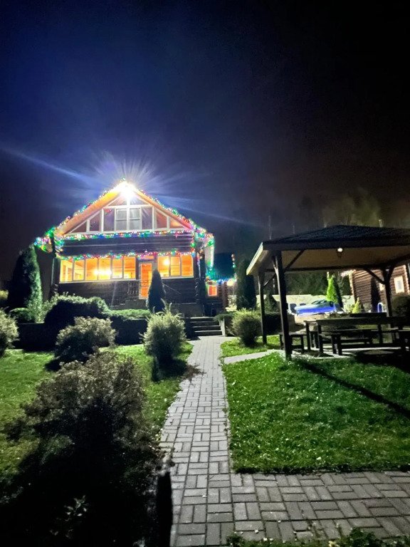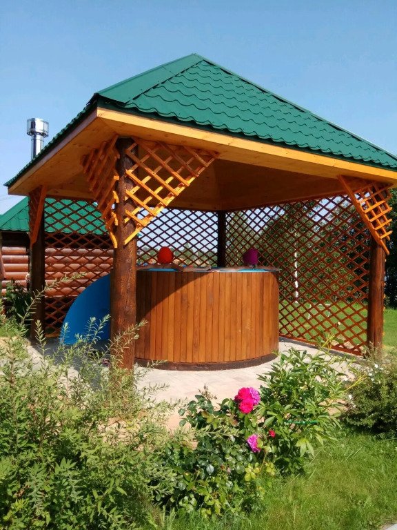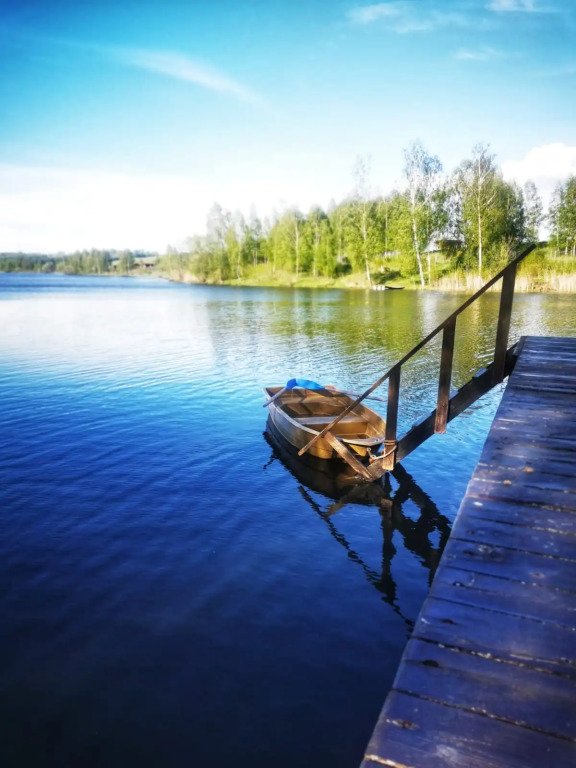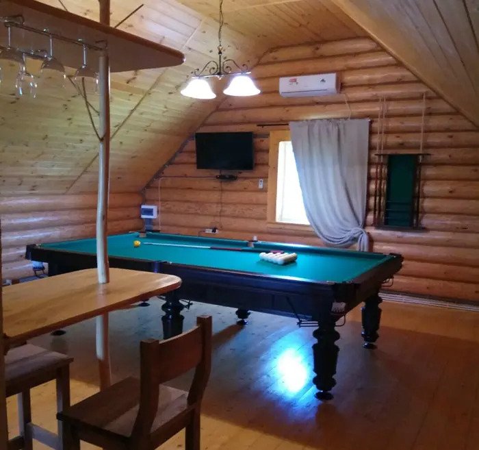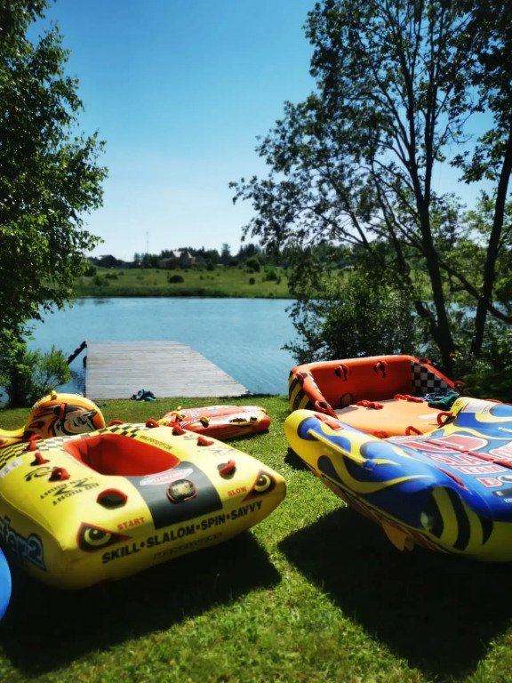 Для бронирования доступен усадебный комплекс на берегу озера, включающий коттедж с пятью спальнями, каминно-обеденным залом, террасой, балконом и всей необходимой бытовой техникой; отдельно стоящую баню с бильярдной на втором этаже; бассейн с подогревом; купель на 10 гостей с подогревом; детский игровой комплекс; собственный пляж с шезлонгами; зону для барбекю со всеми принадлежностями; открытую беседку; волейбольную и футбольную площадки, а также ухоженную территорию. Всё это доступно гостям без ограничения по времени и дополнительной платы. На территории также расположен банкетный зал «Синий Кот» с профессиональным караоке, танцполом и светомузыкой.