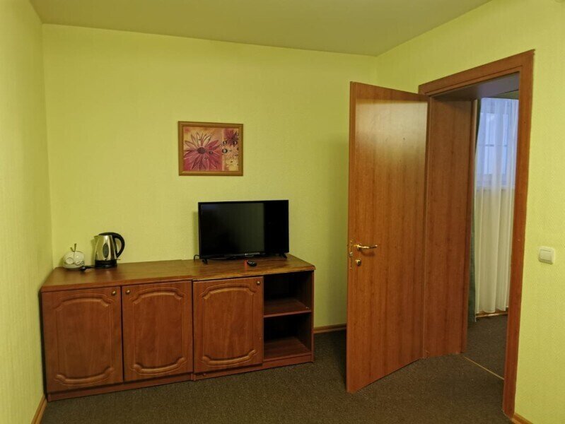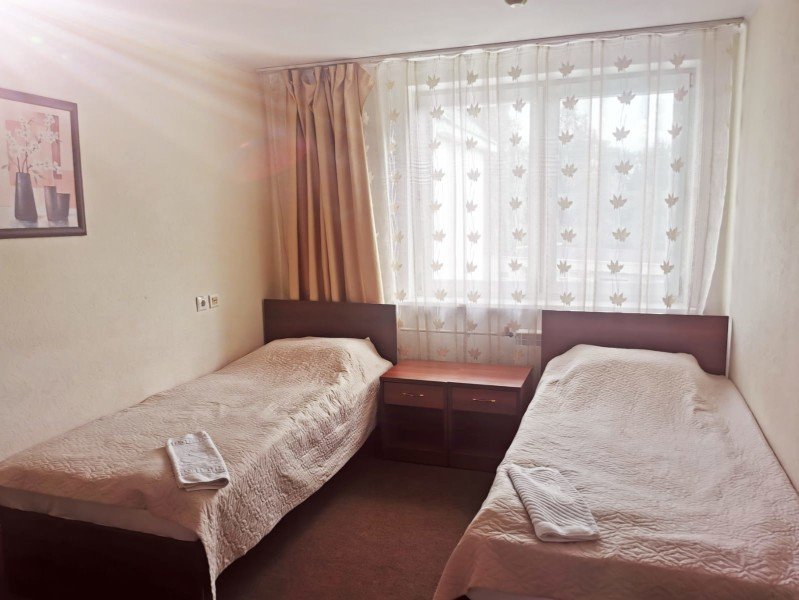 Практичный однокомнатный номер категории «Стандарт» рассчитан на проживание одного-двух гостей. Удобная планировка номера позволяет использовать его как для семейного отдыха, так и для командировок. Номер оборудован двумя односпальными кроватями, телевизором с плоским экраном, холодильником, чайником и прикроватной тумбочкой, шкафом для одежды, санузлом с душевой кабиной и феном. Преимуществом номера «Стандарт» является идеальное соотношение цены и качества.