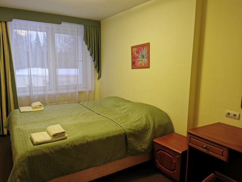 Однокомнатный номер улучшенной планировки категории «Улучшенный стандарт» рассчитан на проживание двух гостей. Номер оборудован двумя раздельными кроватями с возможностью трансформации в большую кровать (по предварительному запросу), шкафом, телевизором с плоским экраном, холодильником и прикроватной тумбочкой, санузлом с душевой кабиной и феном.