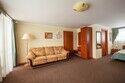 Комфортабельные полулюксовые номера тоже могут принять одного или двух отдыхающих и располагаются они в однокомнатных апартаментах с туалетной комнатой.