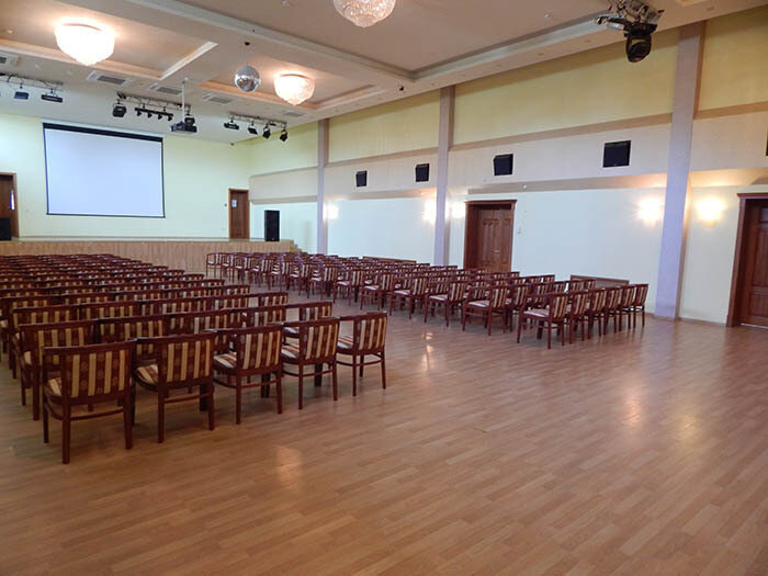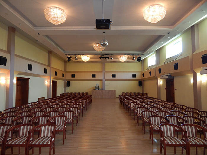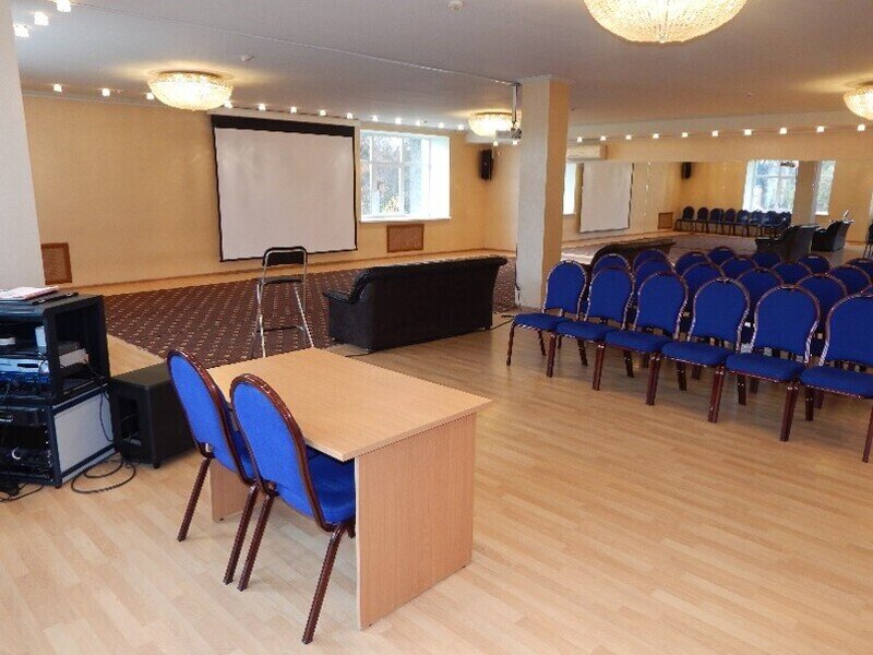 Малый конференц–зал. Зал оборудован широкоформатным экраном, проектором, акустической системой, необходимым звуковым оборудованием. Вместимость до 80 человек. Стоимость — от 2000 ₽/час.