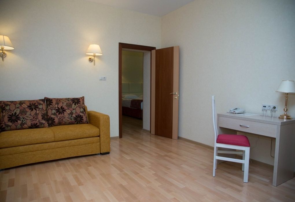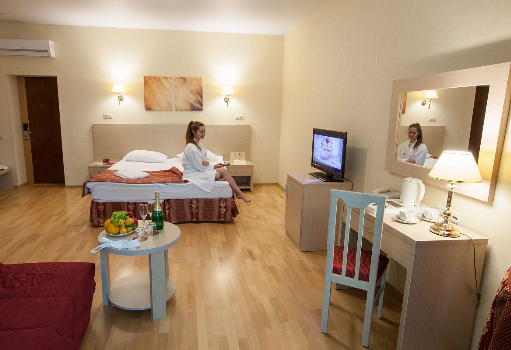 с/у,душ, ТВ,Х, фен, К, сейф, двуспальная кровать, диван, мини-бар.
