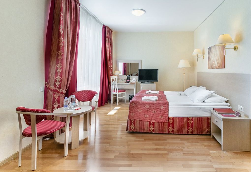 Курорт «Красная Пахра» сочетает в себе лучшие традиции классического санатория с современным уровнем сервиса 4-звездочного отеля европейского класса. В курортном комплексе созданы комфортабельные условия проживания и обслуживание по высшему разряду. Все находится в одном здании. Под крышей семиэтажного корпуса разместился номерной фонд из 259 комфортных номеров со всеми удобствами и вся инфраструктура: лечебное отделение, ресторан, аквазона, спортивный и тренажерный залы. В любое время года и в любую погоду, не выходя из здания, гости курорта могут получить весь комплекс услуг.