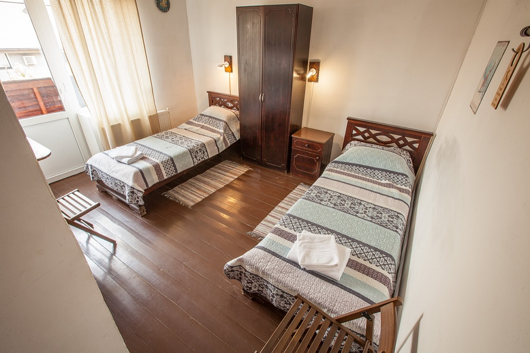Однокомнатный номер с балконом, с двумя раздельными кроватями. Совмещенный санузел с душевой кабиной. В стоимость проживания входит завтрак.