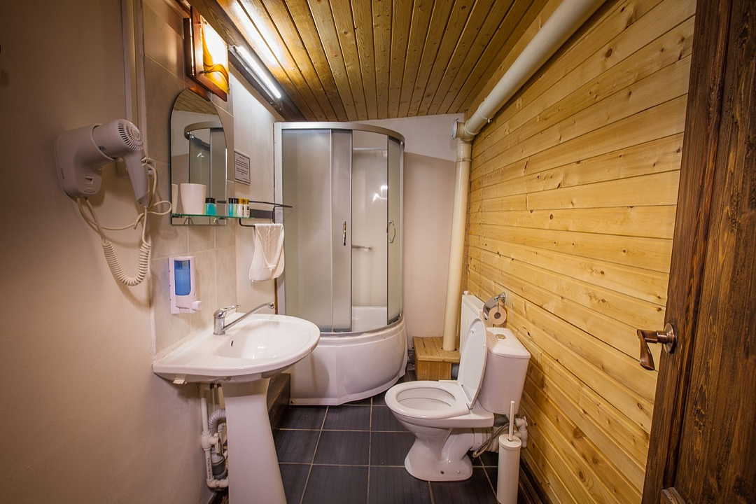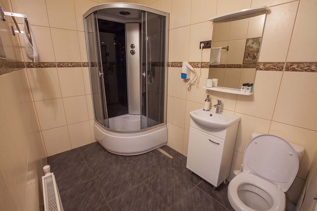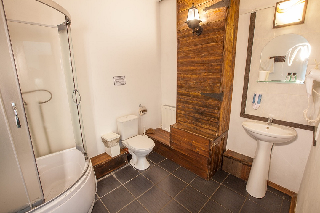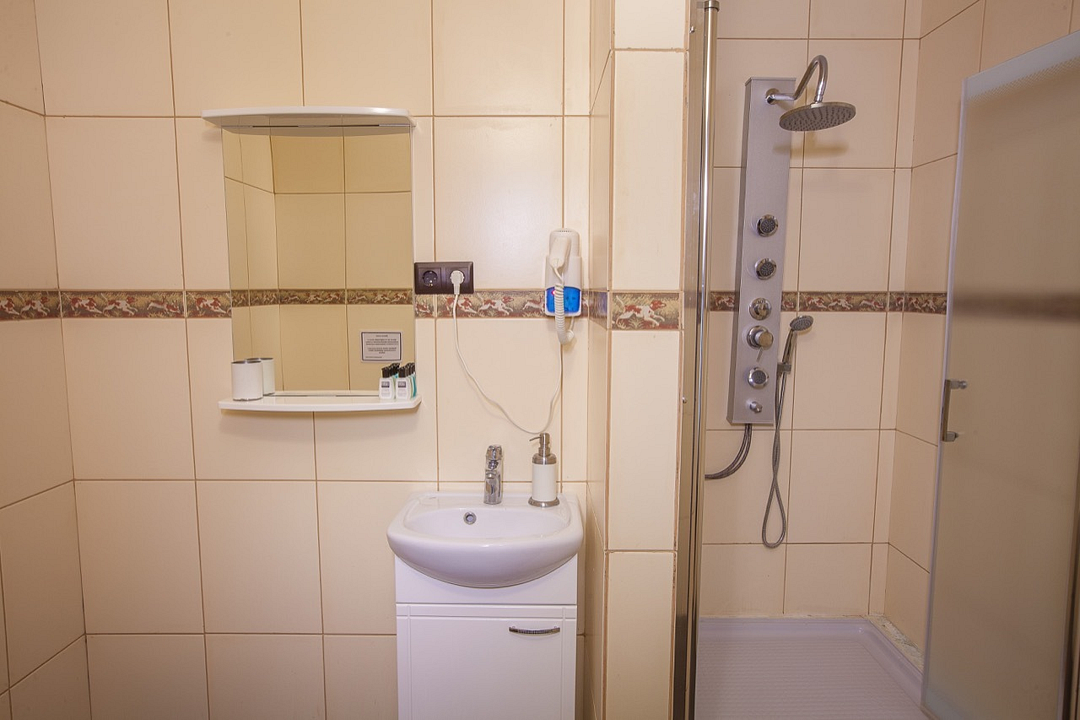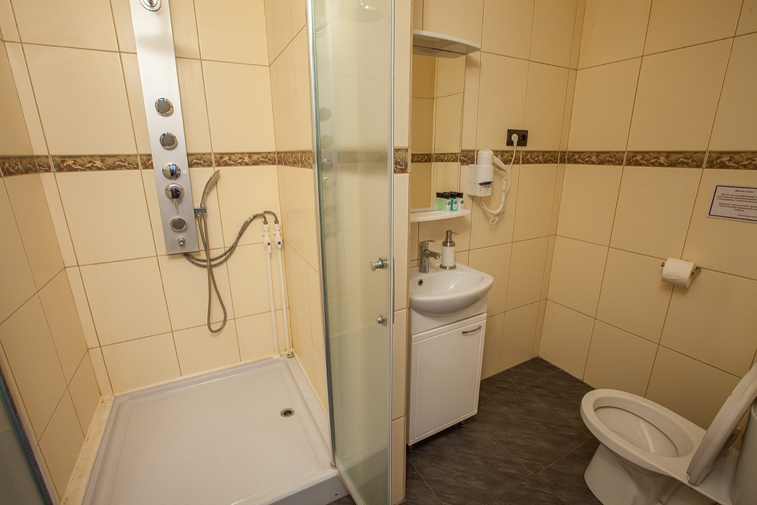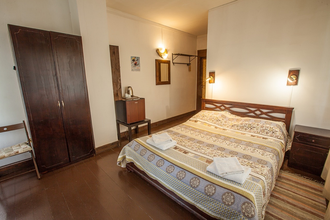 Однокомнатный номер без балкона, с одной двуспальной кроватью. Совмещенный санузел с душевой кабиной. В стоимость проживания входит завтрак.