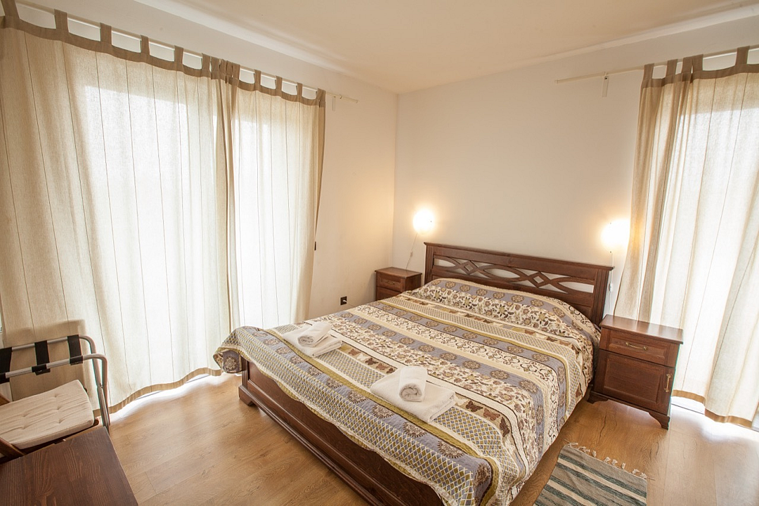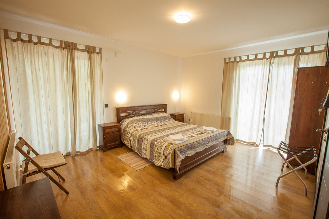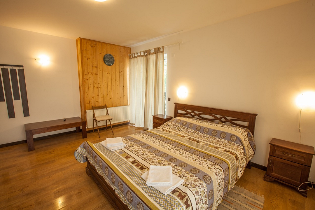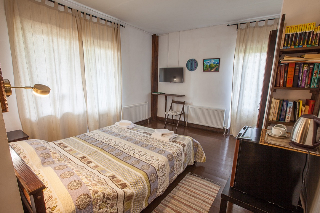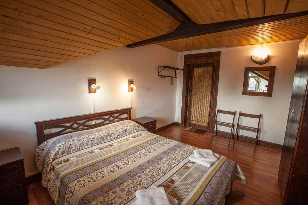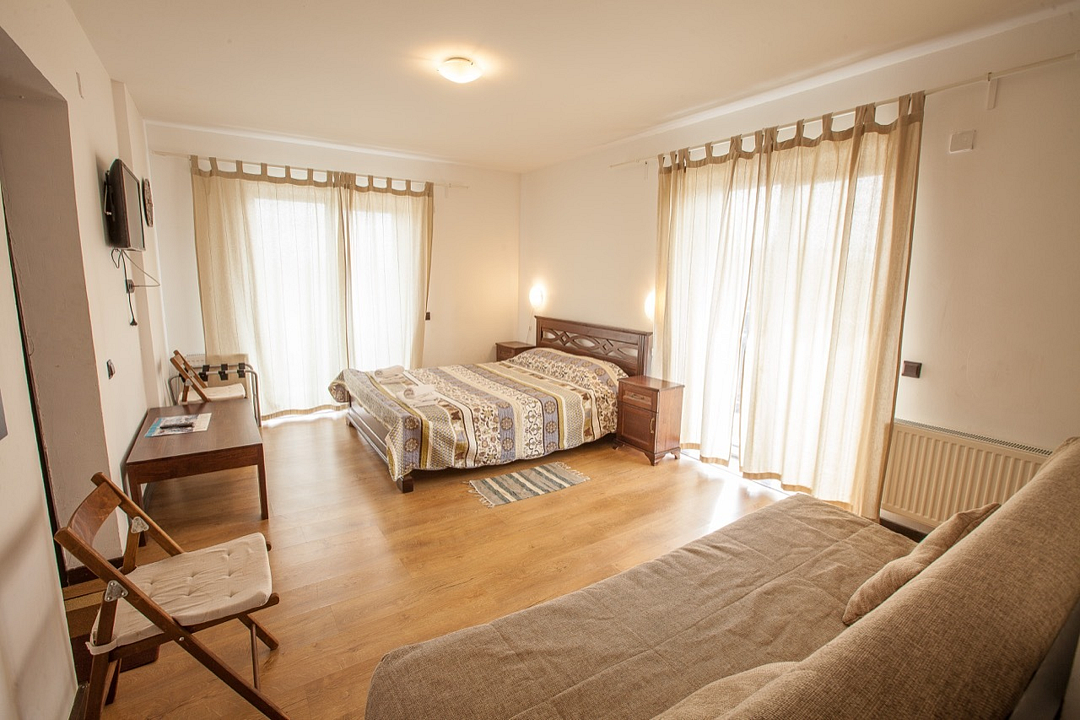 Однокомнатный номер с балконом и террасой, с одной двуспальной кроватью. Совмещенный санузел с душевой кабиной. В стоимость проживания входит завтрак.