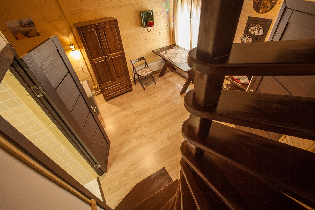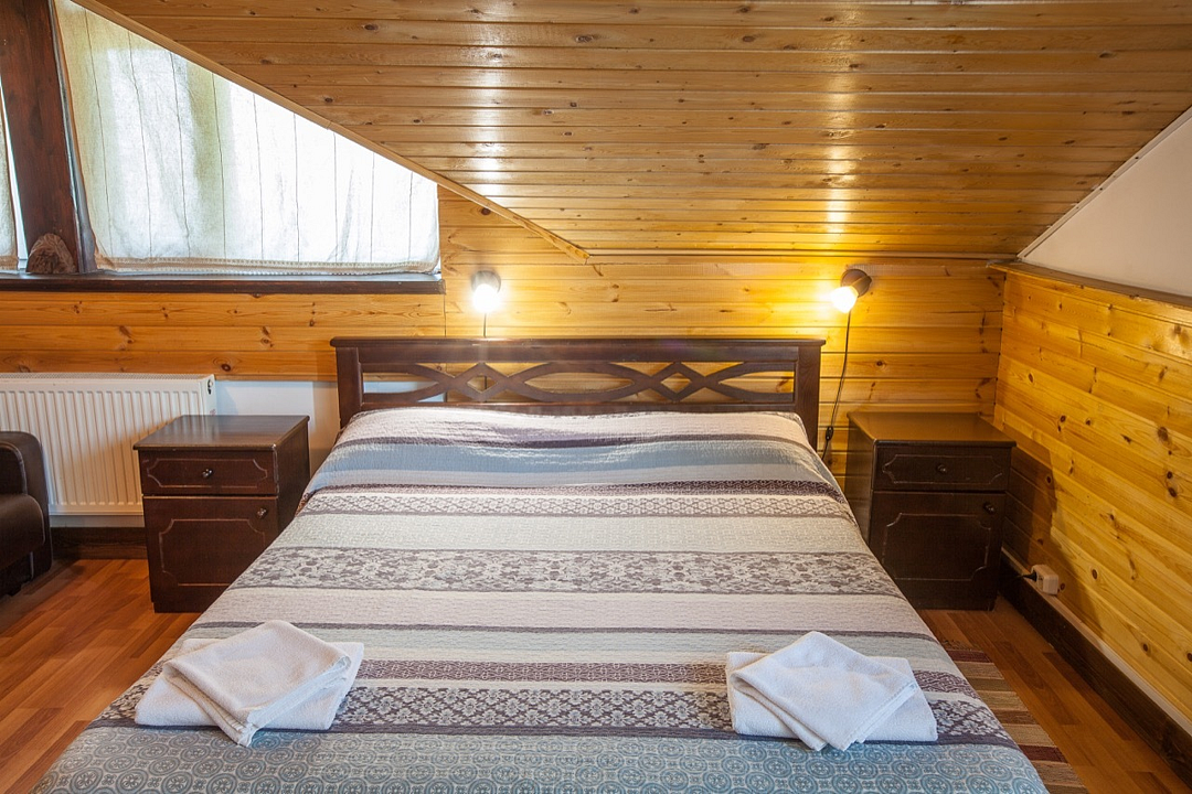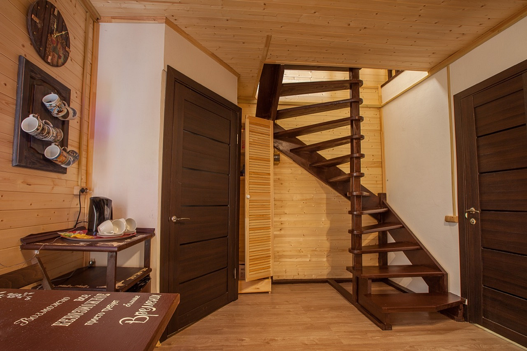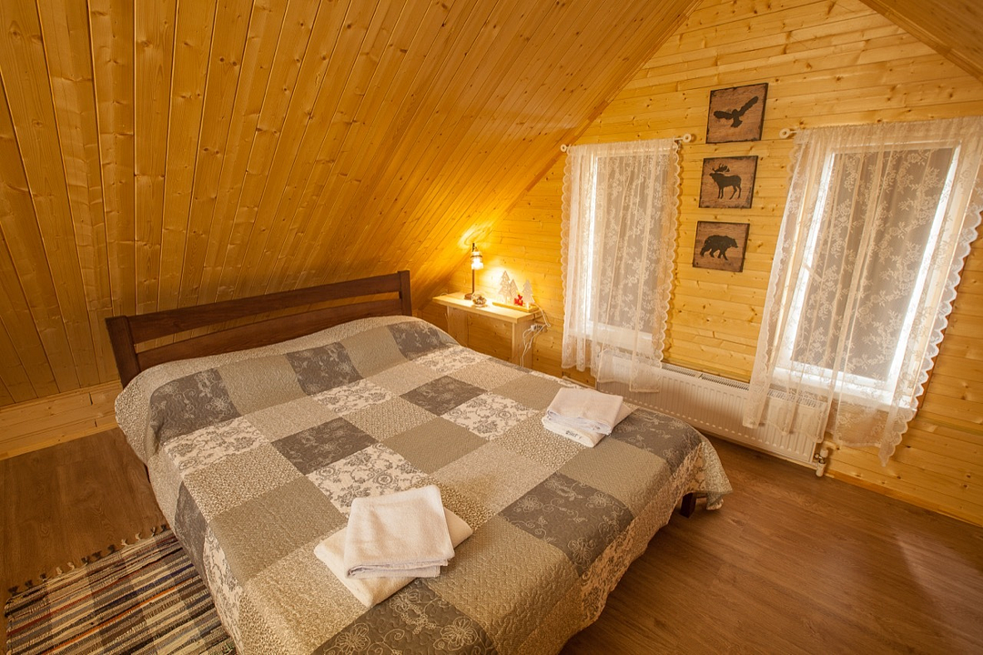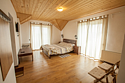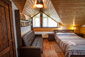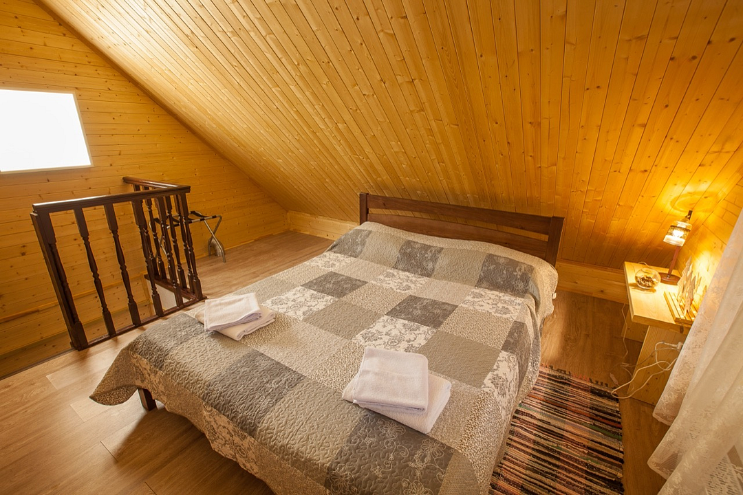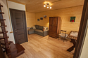 Двухуровневые номера категории «лесной дуплекс», расположены в отдельно стоящем домике на основной территории. Каждый номер имеет индивидуальный выход на общее крыльцо. Верхний этаж: спальня с двуспальной кроватью. Нижний этаж – гостиная с раскладывающимся угловым диваном, обеденным столом, чайником, мини-холодильником. Номера без балконов. Максимальная загрузка 2 + 2.