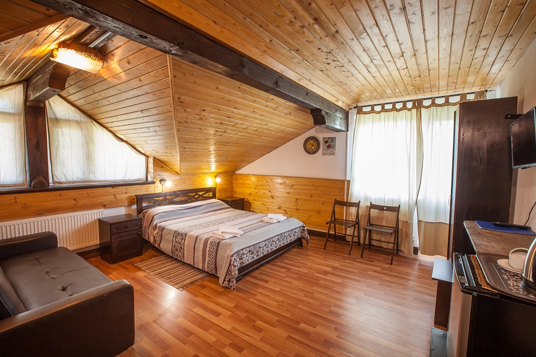 Путешествие с семьейУютно, по домашнему. И кошка есть)Милый уютный небольшой отель на 11 номеров. Рядом большой отель Свежий ветер, куда можно сходить в спа центр (если там не полный заезд - мы так и не попали). Несколько минут на машине - склоны Сорочан.