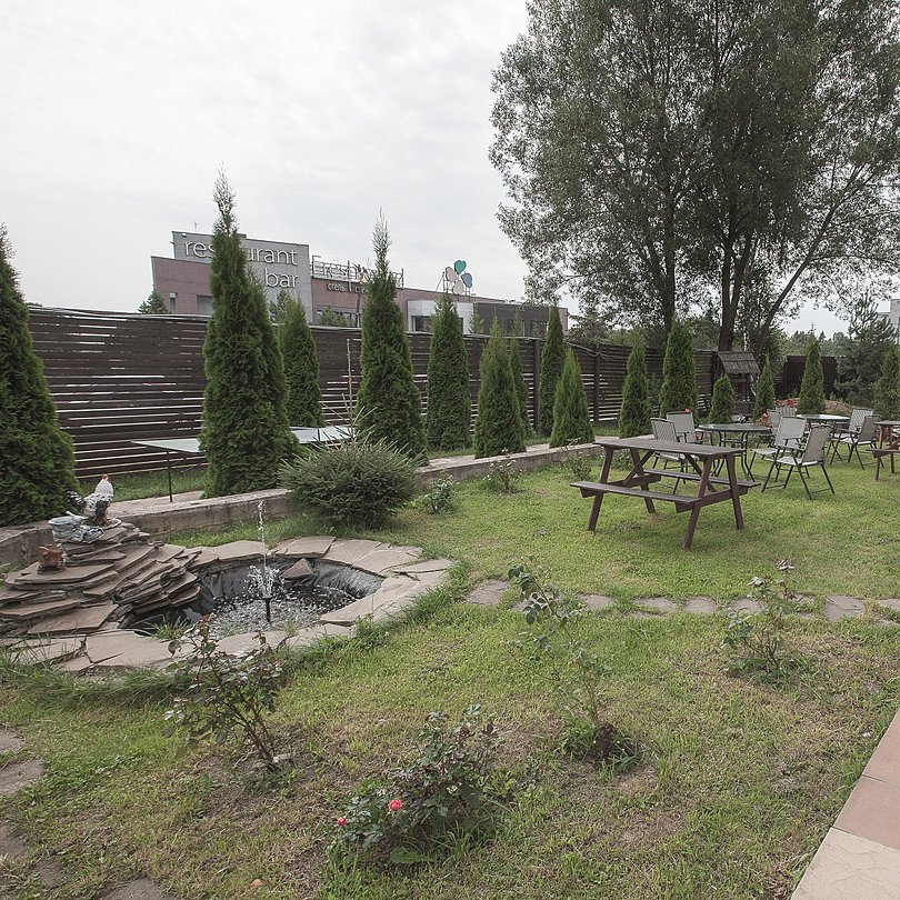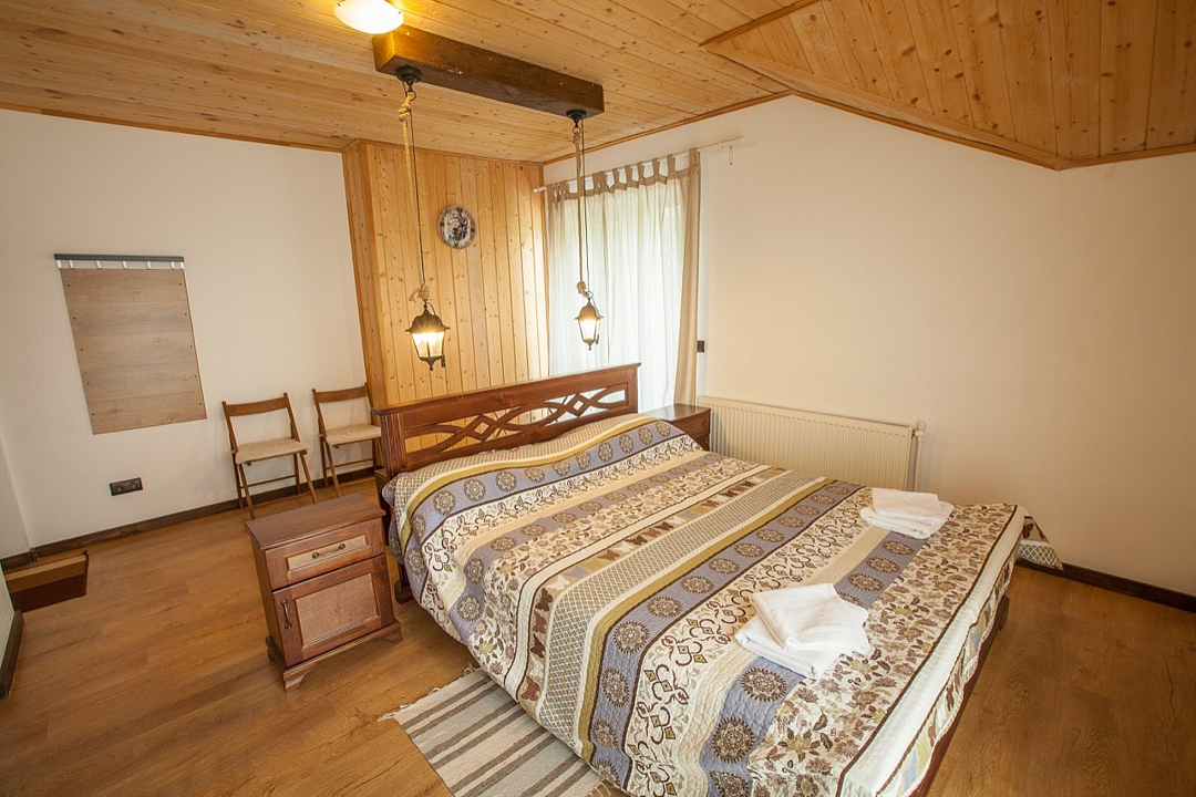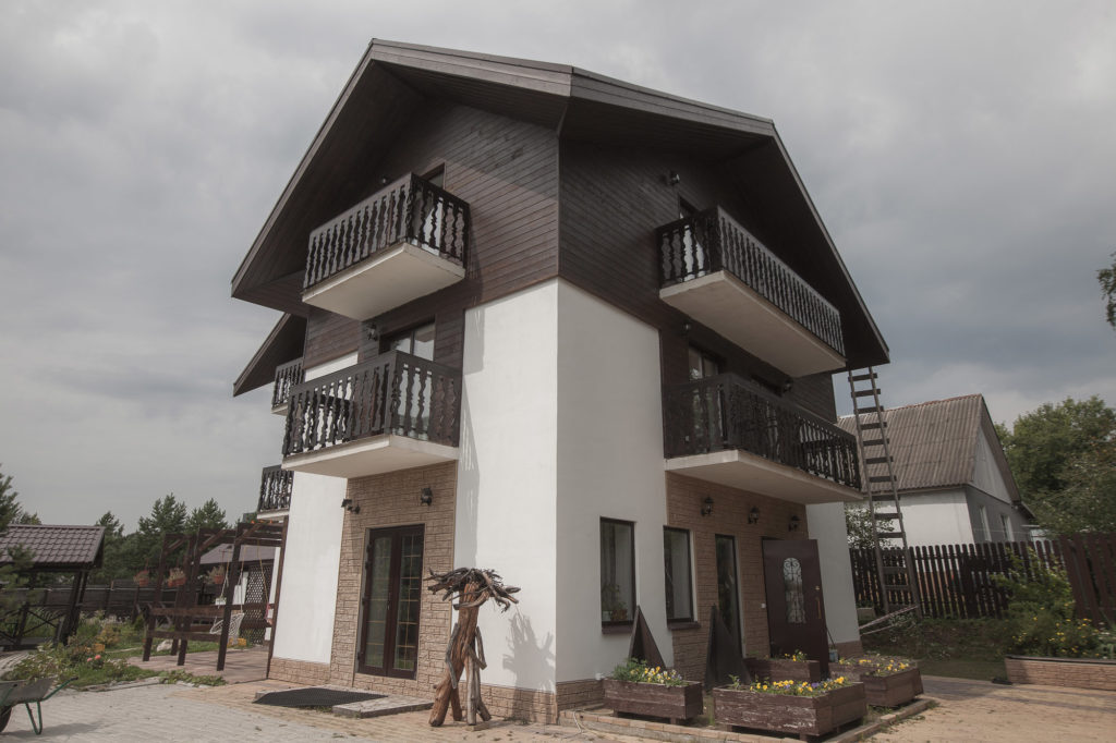 Трехэтажное здание в стиле альпийского шале окружено благоустроенной закрытой территорией. Гостям предлагают уютные номера с ванной, плазменным телевизором, вентилятором и Wi-Fi. Есть отдельно стоящие коттеджи с кухней.