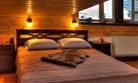 Двухуровневые номера категории «лесной дуплекс» площадью 35 кв.м., расположены в отдельно стоящем домике на основной территории. Каждый номер имеет индивидуальный выход на общее крыльцо. Верхний этаж: спальня с двуспальной кроватью. Нижний этаж – гостиная с раскладывающимся угловым диваном, обеденным столом, чайником, мини-холодильником.