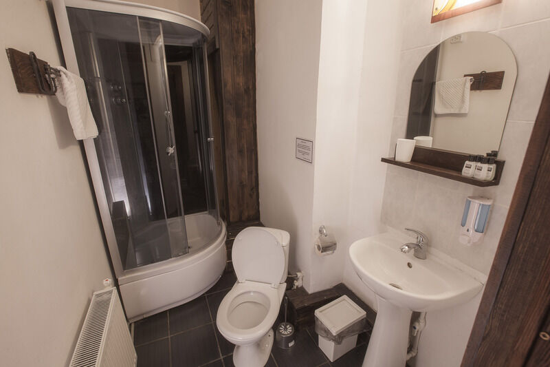 Все номера гостевого дома имеют индивидуальный санузел с душевой кабиной, феном, мыльными принадлежностями. Во всех номерах установлены телевизоры. Номера в главном здании расположены на втором и третьем этажах.