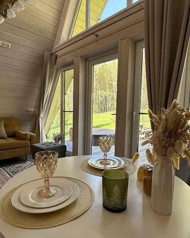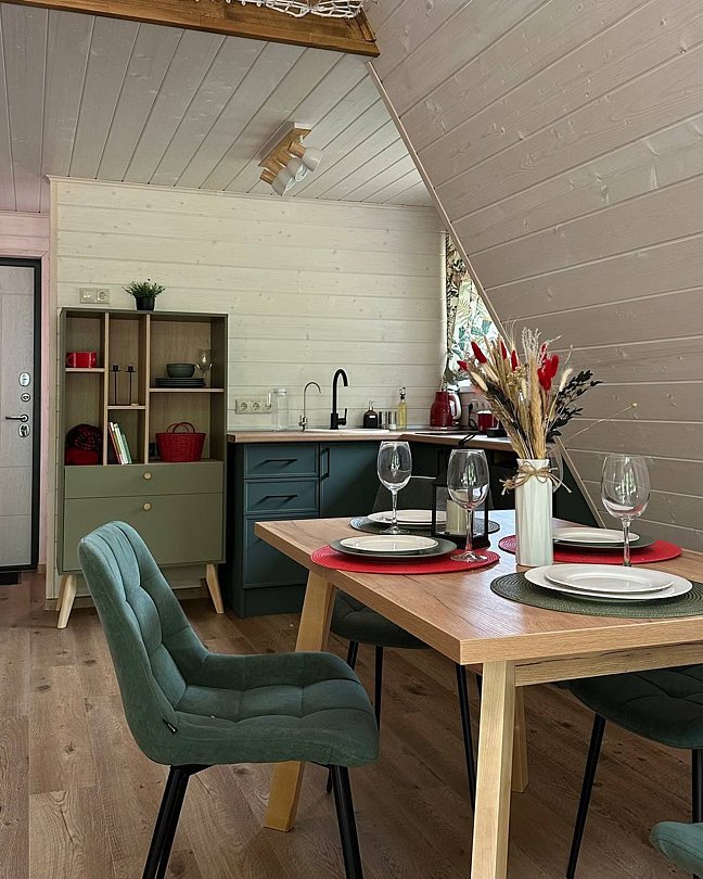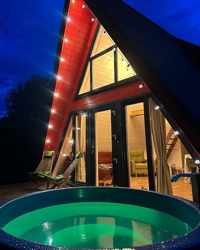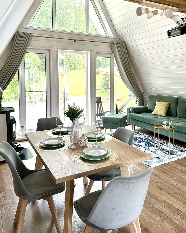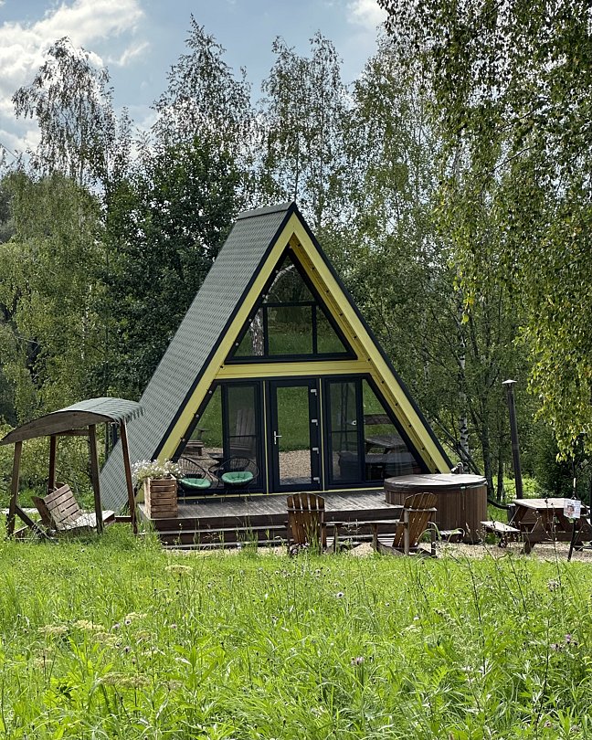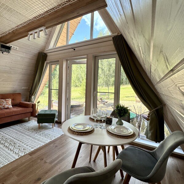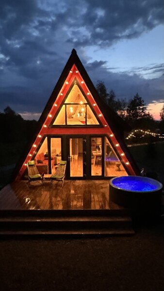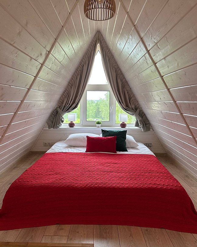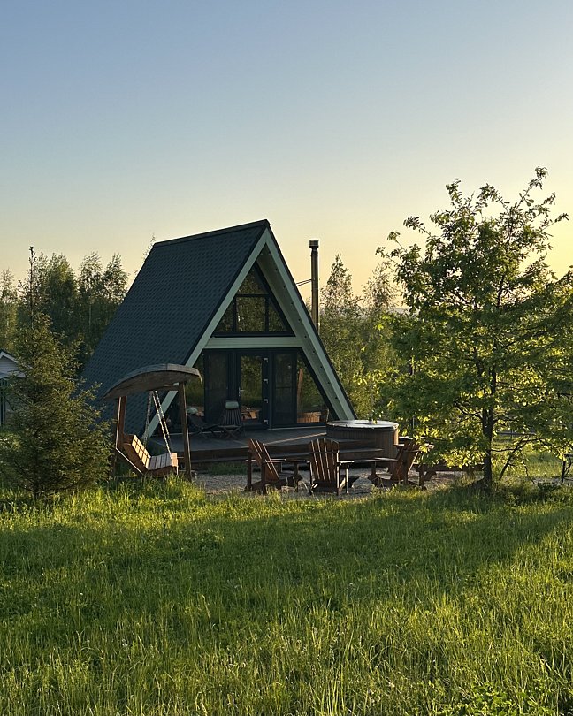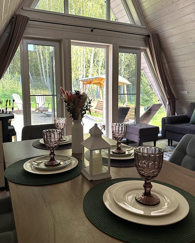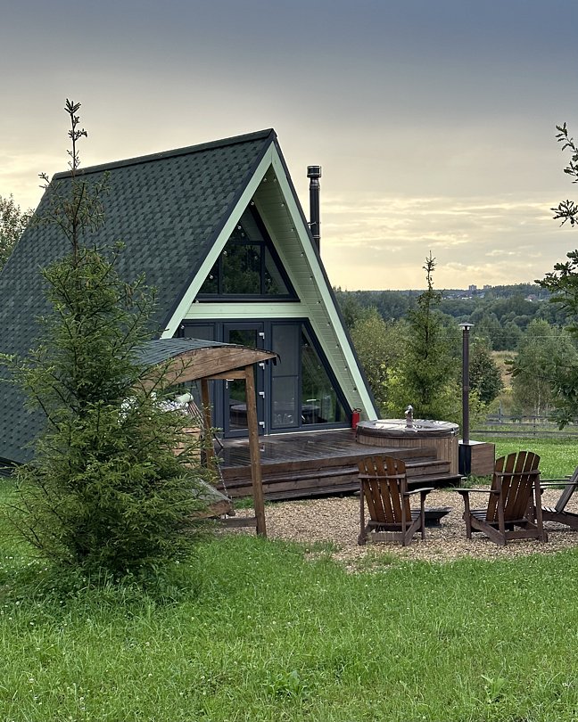 Территория площадью пять гектаров предлагает гостям комфортные А-фрейм дома со всеми удобствами. В каждом домике установлен современный проектор, создающий идеальные условия для просмотра любимых фильмов и контента с популярных стриминговых сервисов. Также в домиках полностью оборудована кухня для приготовления ваших любимых блюд. Лесной воздух, умиротворяющая тишина, уютная атмосфера и комфортабельные кровати обеспечат вам крепкий здоровый сон и полноценное восстановление сил.