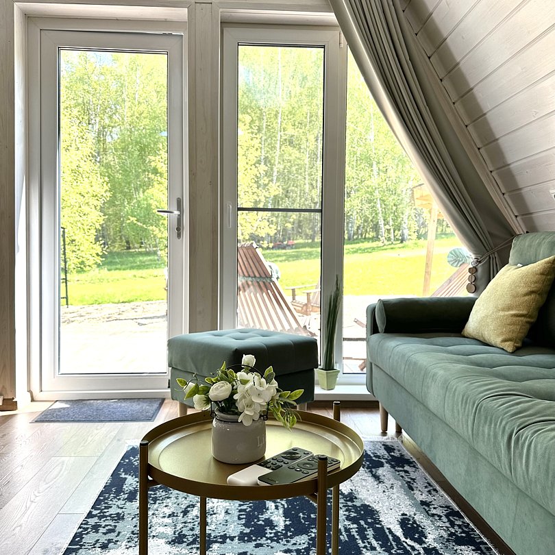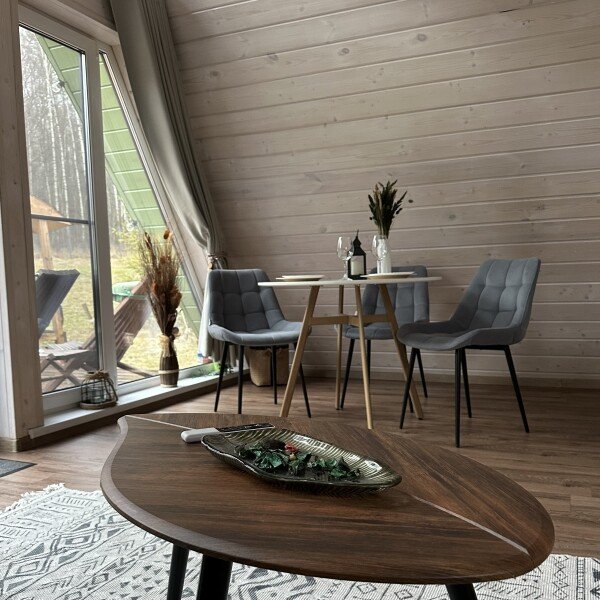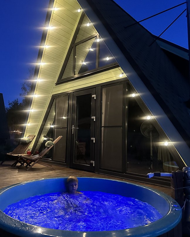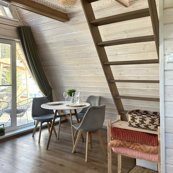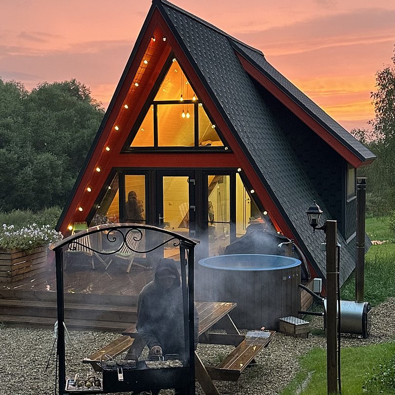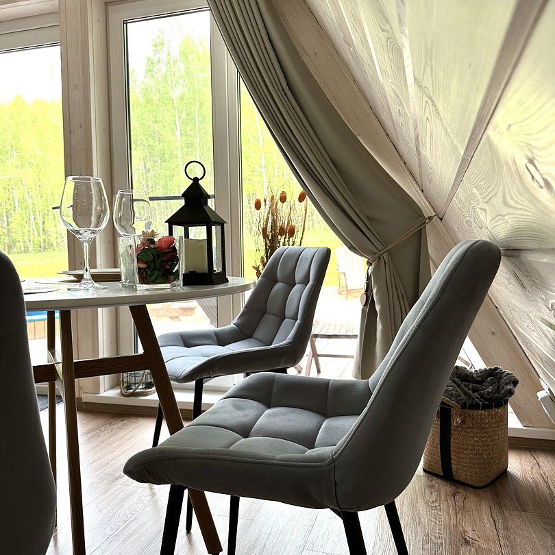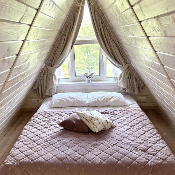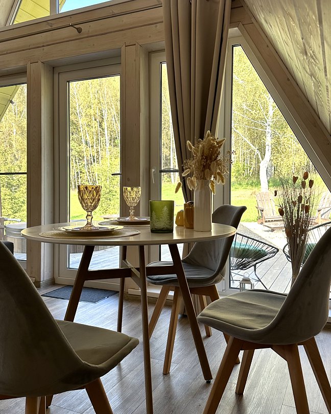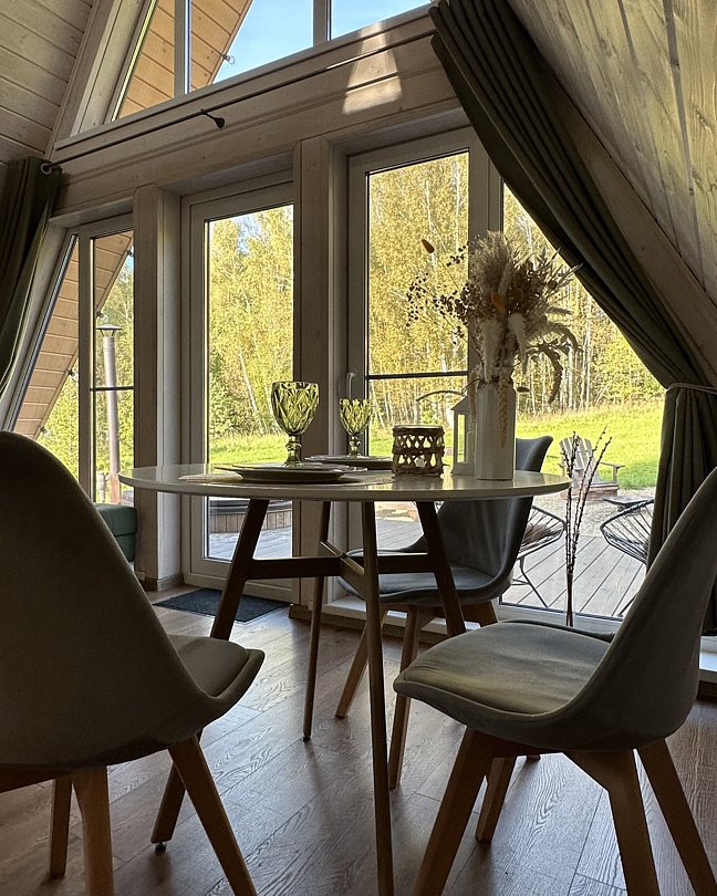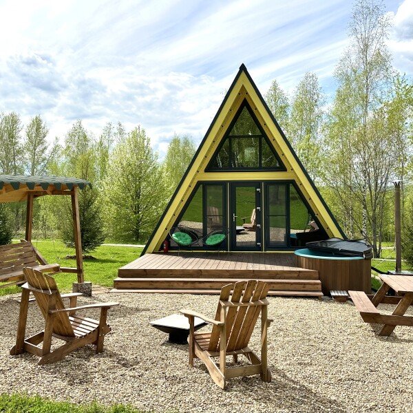 Территория площадью пять гектаров предлагает гостям комфортные А-фрейм дома со всеми удобствами. В каждом домике установлен современный проектор, создающий идеальные условия для просмотра любимых фильмов и контента с популярных стриминговых сервисов. Также в домиках полностью оборудована кухня для приготовления ваших любимых блюд. Лесной воздух, умиротворяющая тишина, уютная атмосфера и комфортабельные кровати обеспечат вам крепкий здоровый сон и полноценное восстановление сил.