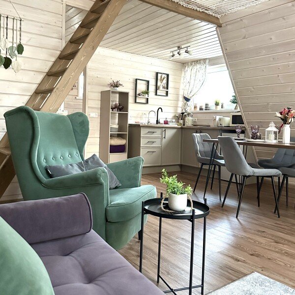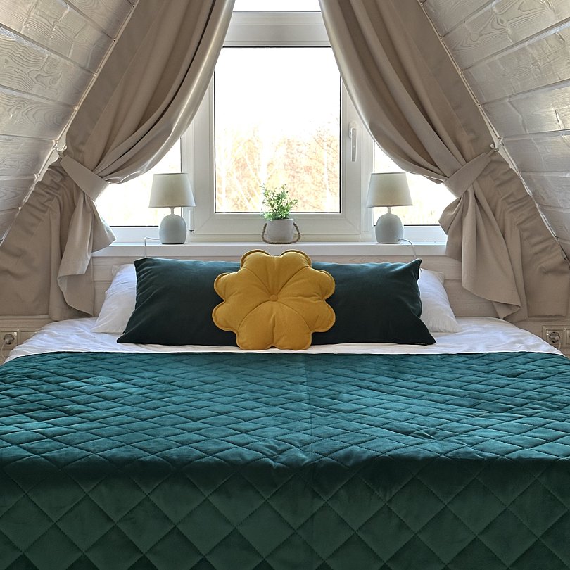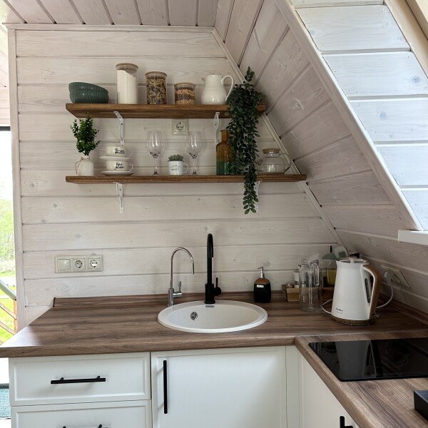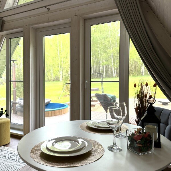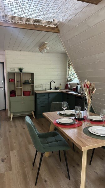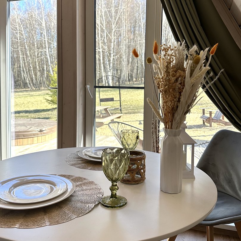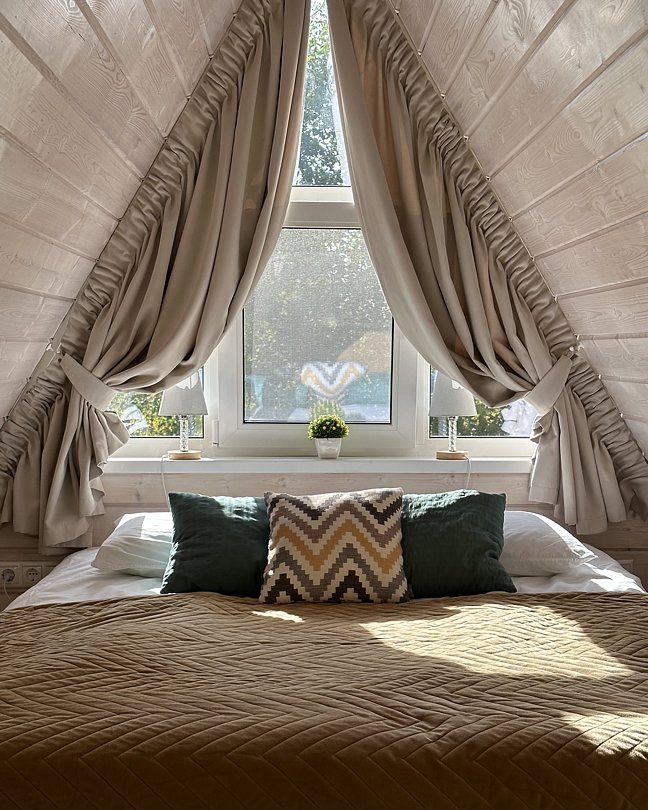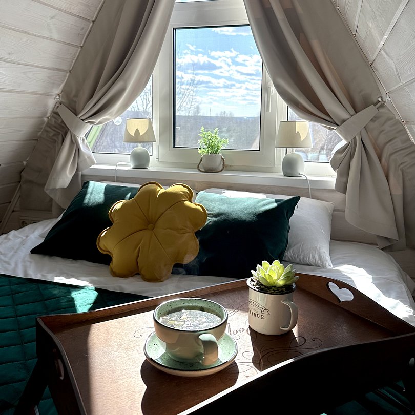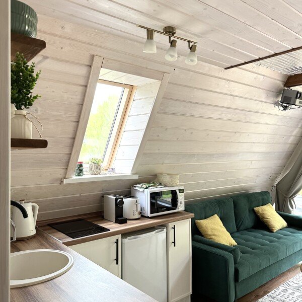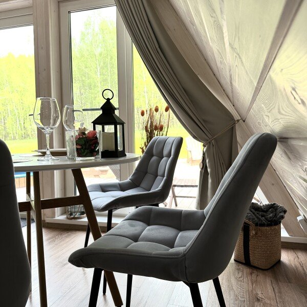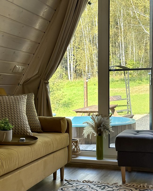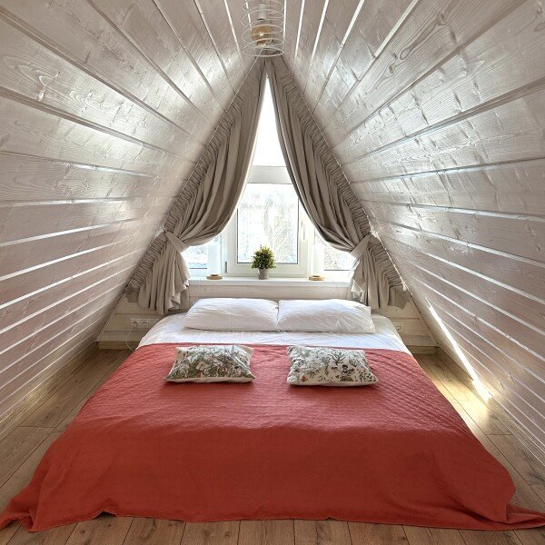 Территория площадью пять гектаров предлагает гостям комфортные А-фрейм дома со всеми удобствами. В каждом домике установлен современный проектор, создающий идеальные условия для просмотра любимых фильмов и контента с популярных стриминговых сервисов. Также в домиках полностью оборудована кухня для приготовления ваших любимых блюд. Лесной воздух, умиротворяющая тишина, уютная атмосфера и комфортабельные кровати обеспечат вам крепкий здоровый сон и полноценное восстановление сил.