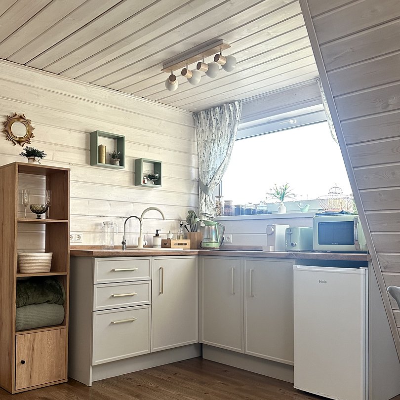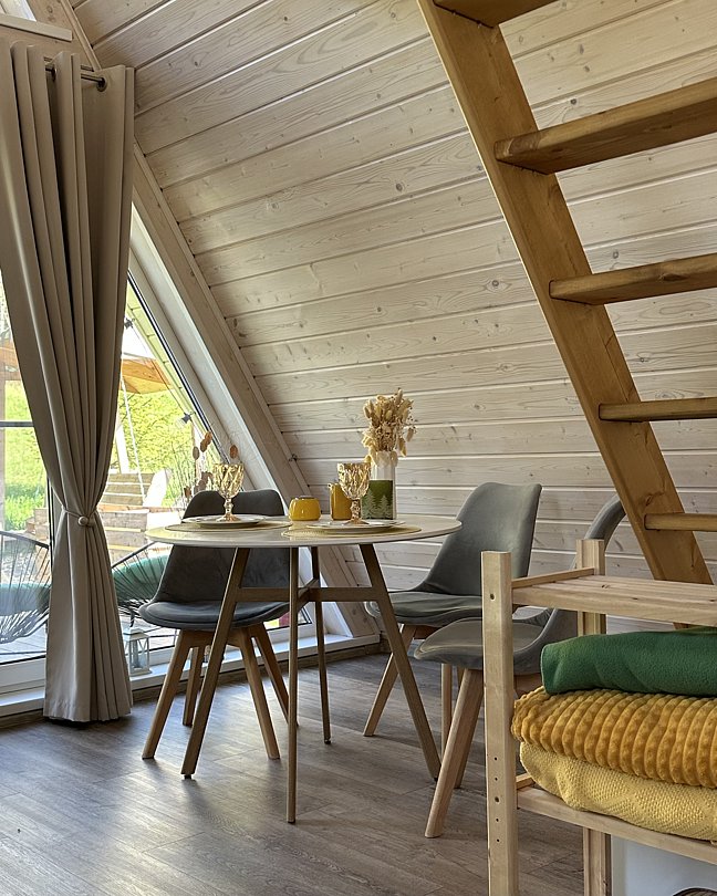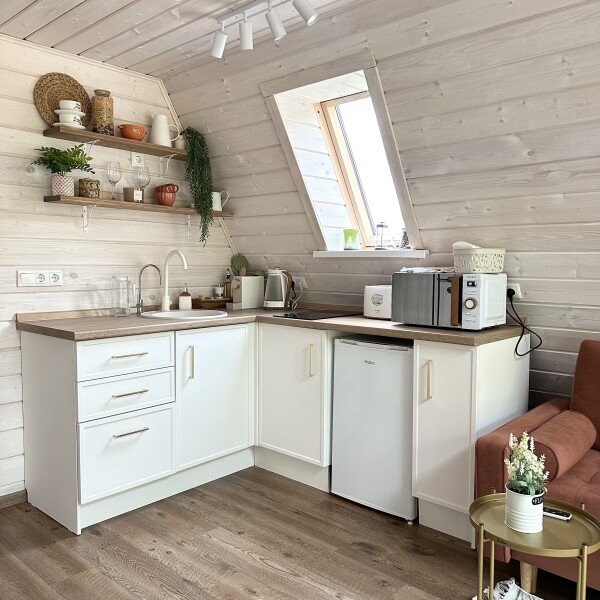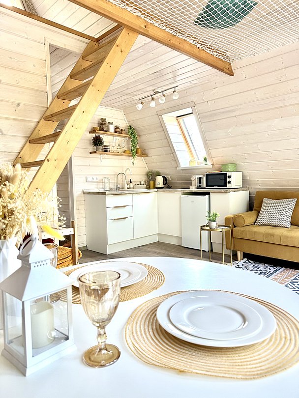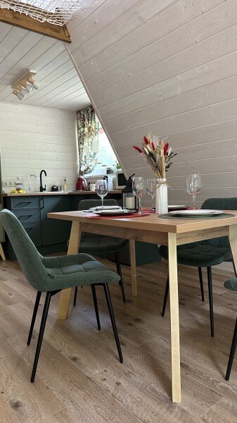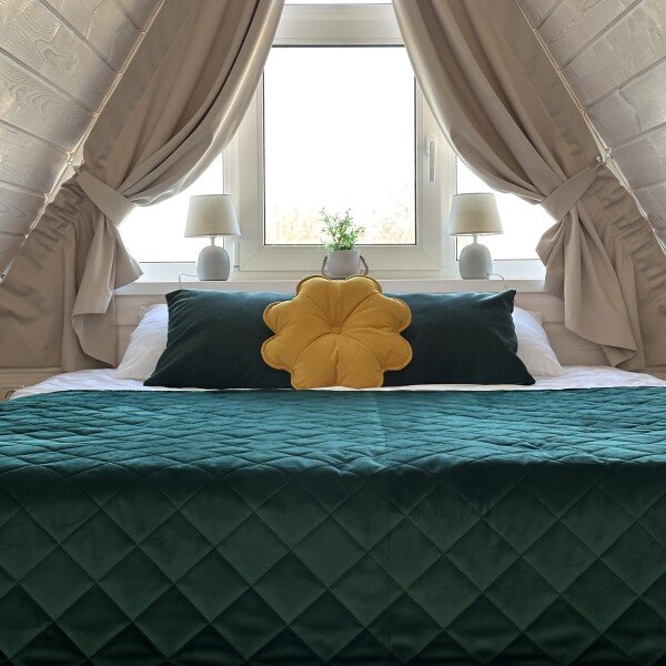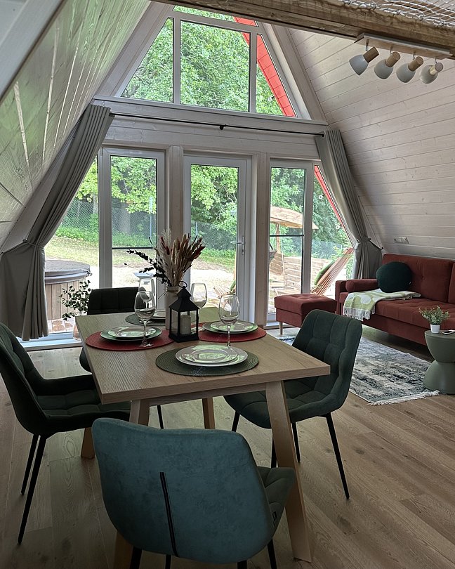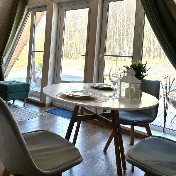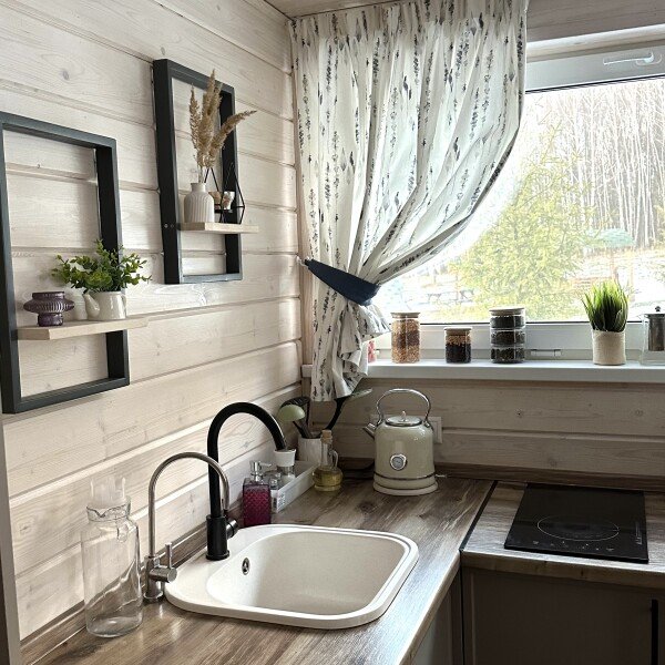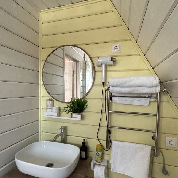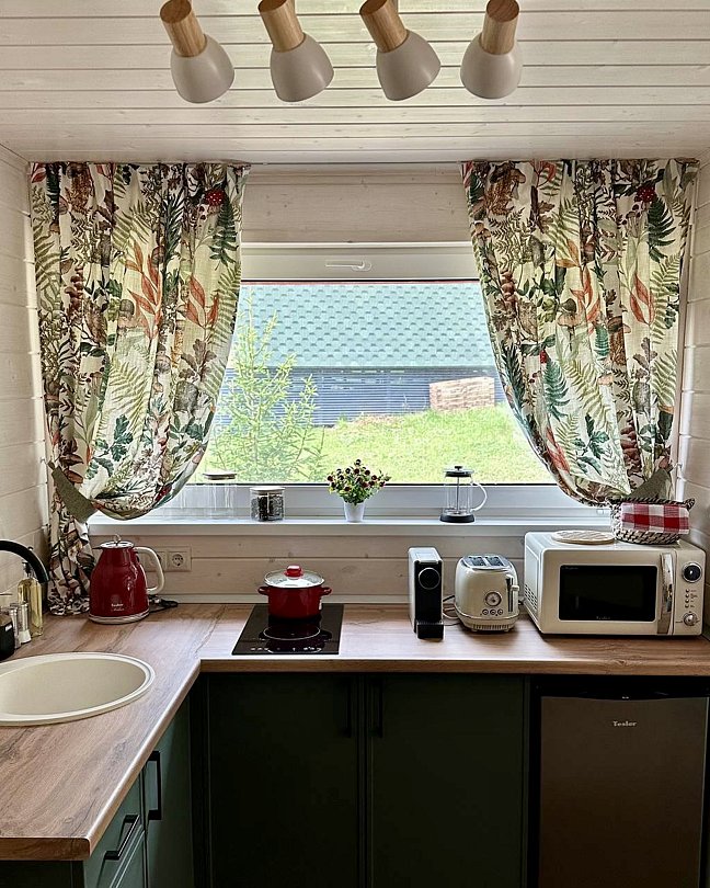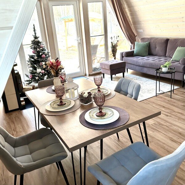 Территория площадью пять гектаров предлагает гостям комфортные А-фрейм дома со всеми удобствами. В каждом домике установлен современный проектор, создающий идеальные условия для просмотра любимых фильмов и контента с популярных стриминговых сервисов. Также в домиках полностью оборудована кухня для приготовления ваших любимых блюд. Лесной воздух, умиротворяющая тишина, уютная атмосфера и комфортабельные кровати обеспечат вам крепкий здоровый сон и полноценное восстановление сил.