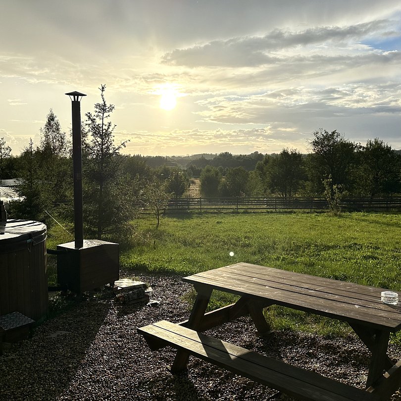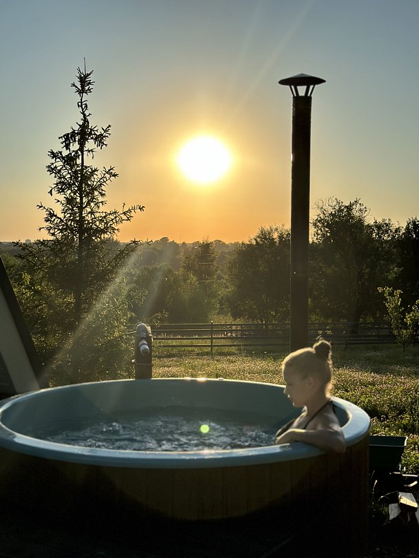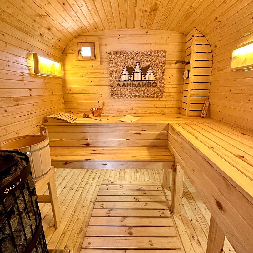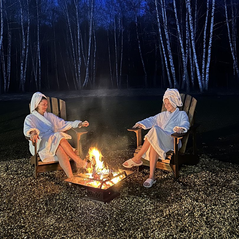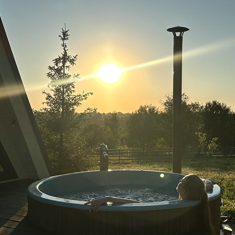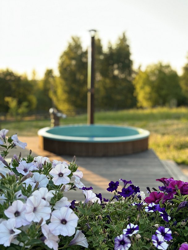 На террасе каждого дома вас ждет современная купель фурако с гейзером и подсветкой, оборудованная дровяным подогревом. В уединенном уголке фермы расположена баня с традиционной финской вентиляцией «Басту», где можно с пользой провести время: попариться, освежиться холодной водой, насладиться травяным чаем и провести комплексное оздоровление организма.
