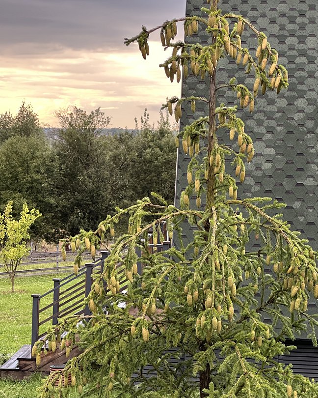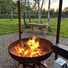 Участок огороженной еловой изгородью — 150 кв.м, на котором вы найдете личный мангал, удобную уличную мебель, деревянные качели, стол с лавочками и костровую чашу для приятных вечеров под звездами.