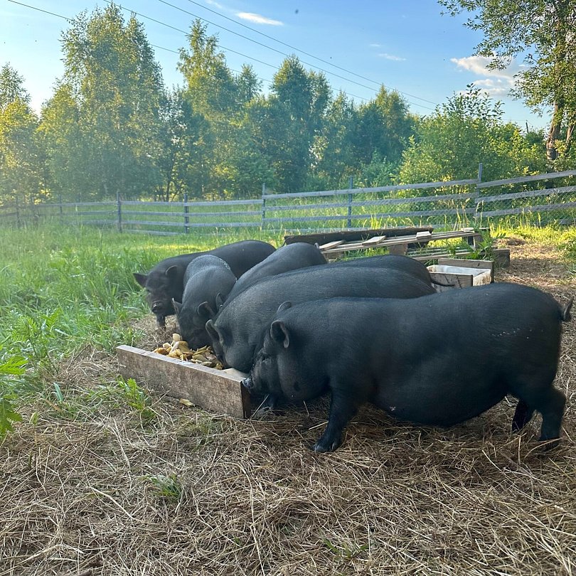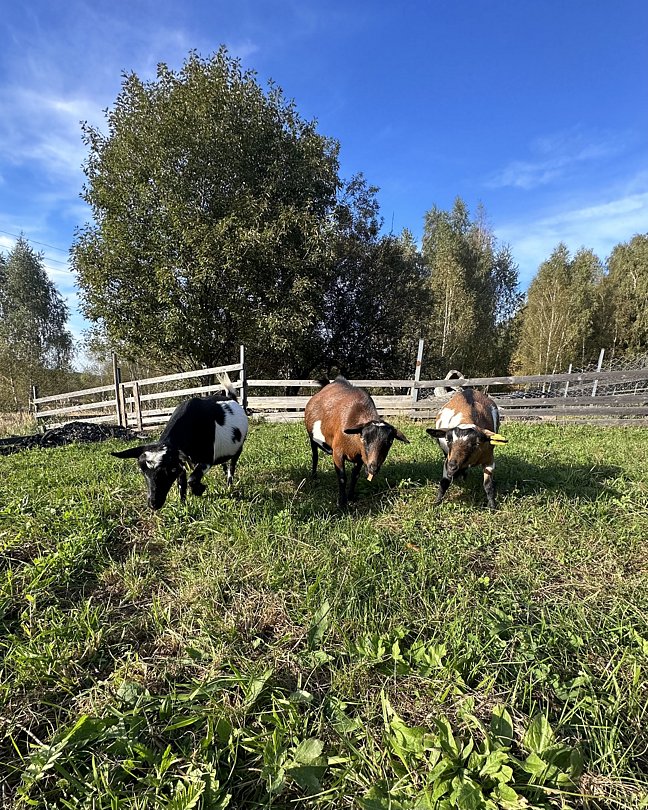 Читать полностьюНа территории фермы содержатся различные животные: козы и козлята, вьетнамские поросята, гуси, утки, индюки, куры и совсем скоро павлины, фазаны и кролики. Все животные содержатся в раздельных обустроенных загонах в окружении леса и в хорошую погоду всегда находятся на свежем воздухе, на свободном луговом выпасе. Всех животных можно посмотреть возле загонов, сфотографироваться и покормить овощами, приобретенными в фермерской лавке. Заходить в загоны к животным без персонала запрещено!