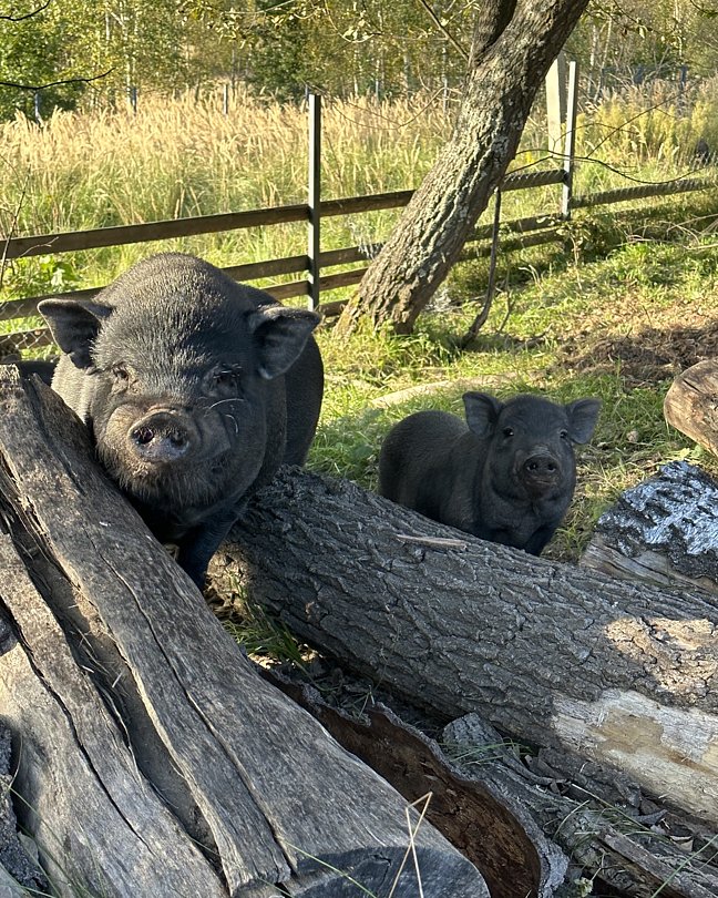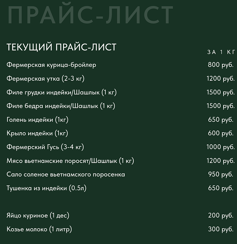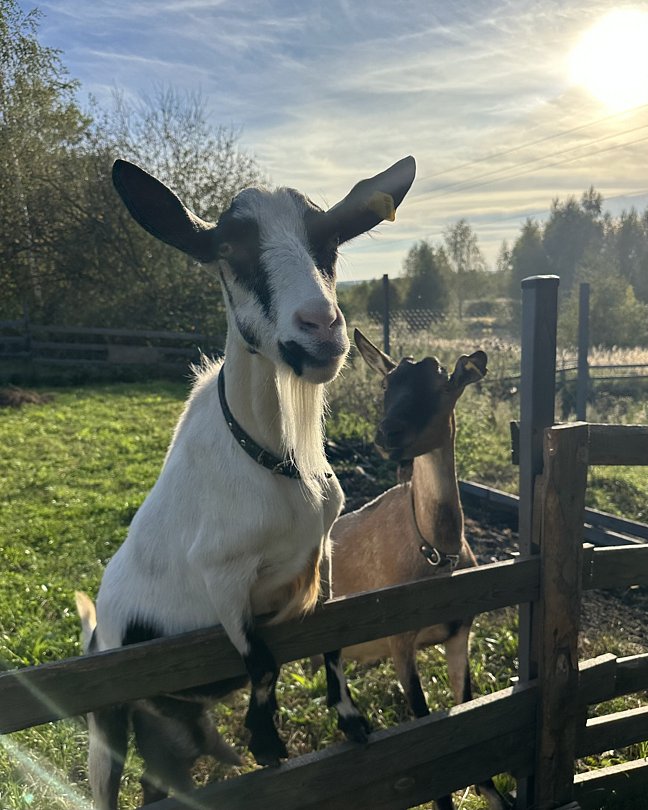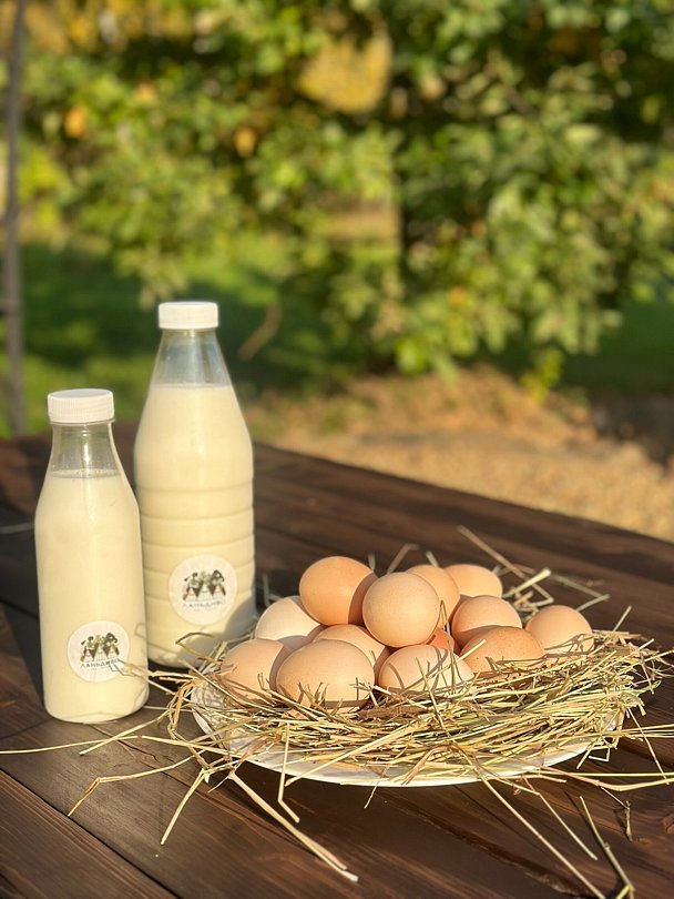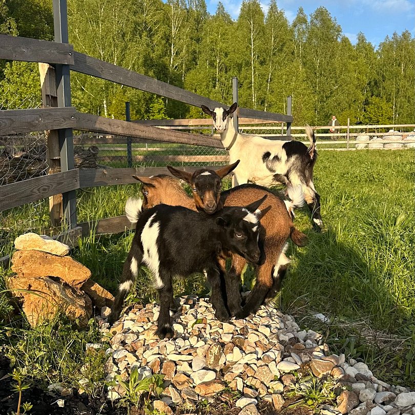 На ферме живут козы с козлятами, вьетнамские поросята, гуси, утки, индюки, куры, а скоро появятся павлины, фазаны и кролики. В местной лавке вы всегда можете приобрести натуральную продукцию собственного производства: мясо птицы и поросят, сало, свежие яйца, козье молоко и сезонные овощи прямо с грядки.