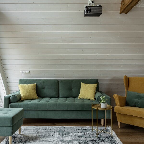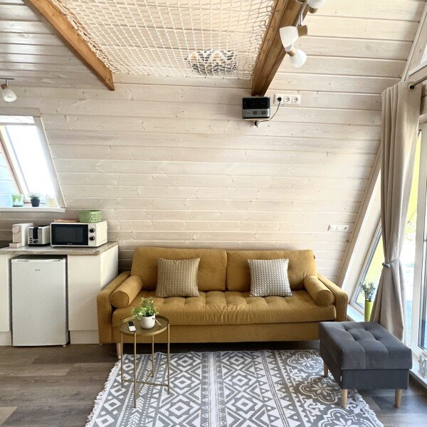 Гостиная: бесплатный Wi-Fi, премиум проектор, удобный раскладной диван, кресло-кровать, обеденная зона, настольные игры для веселого времяпрепровождения.