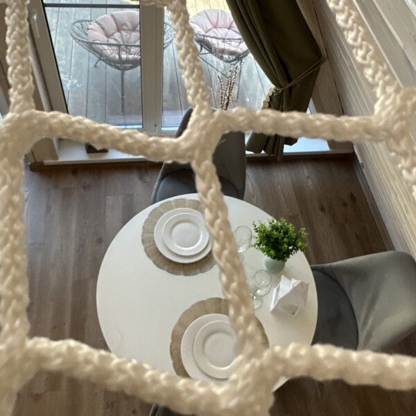 Спальня: двуспальный комфортный матрас, сетка-гамак для расслабления.