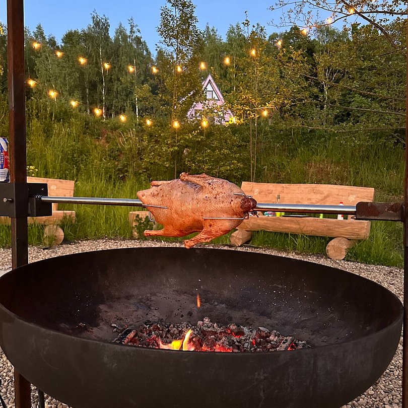 У каждого домика есть мангальная зона где можно приготовить мясо на шампурах либо решетке!