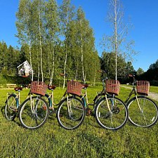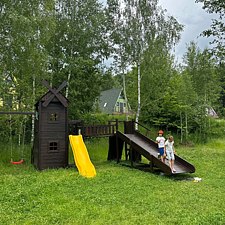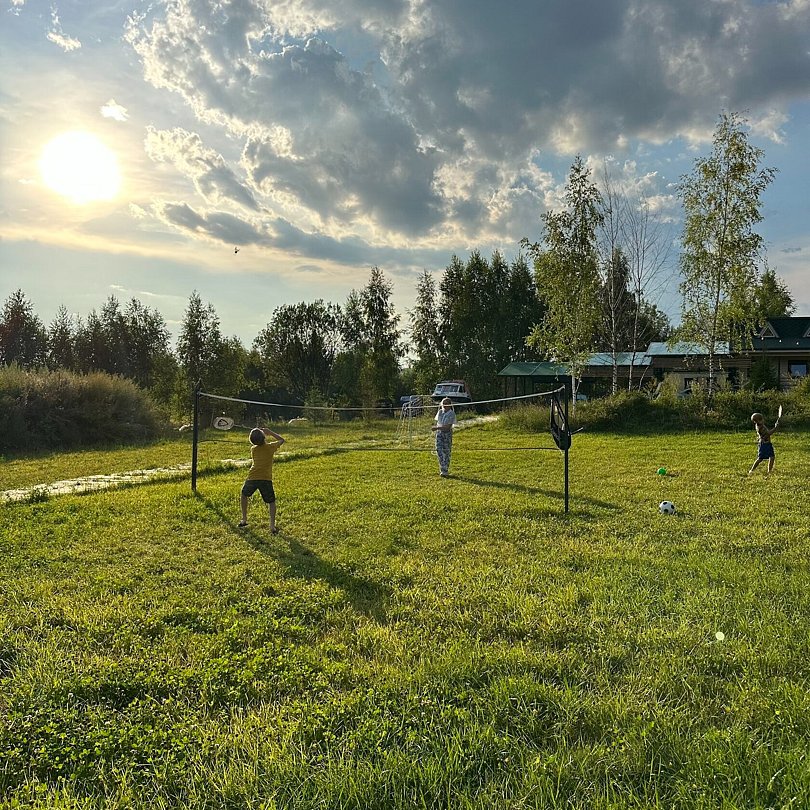 Также в стоимость аренды включено: пользование общей зоной барбекю с вертелем, детской и спортивной площадкой, мини футбольным полем, беговыми лыжами, велосипедами, дрова для костровой чаши, также включено посещение фермы, общение с животными.