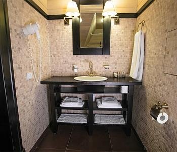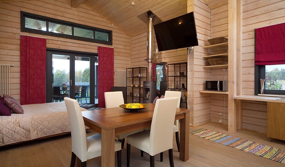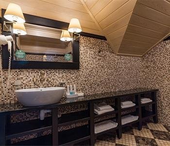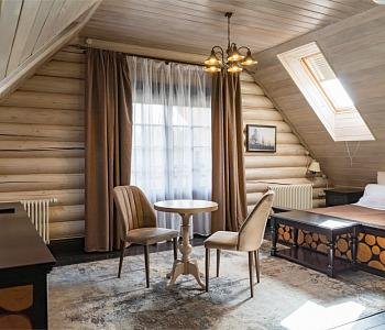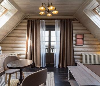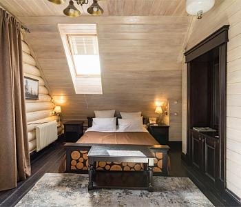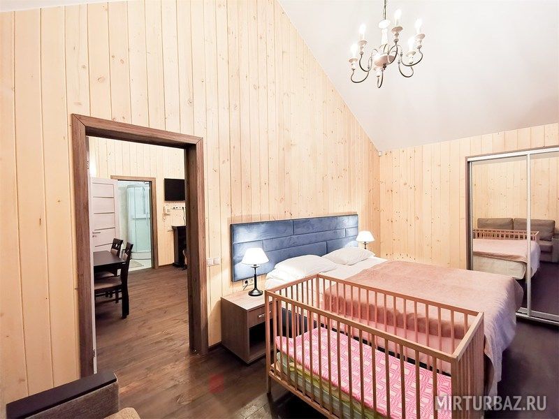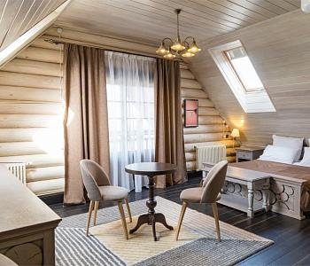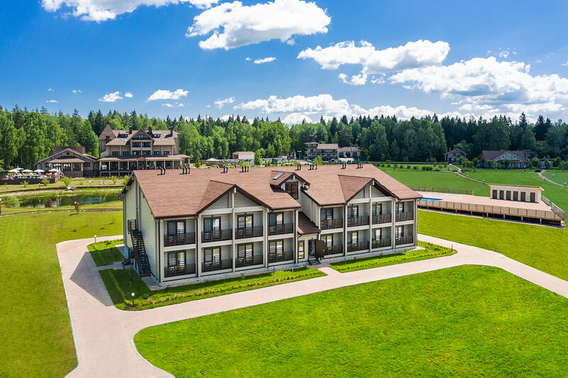 На благоустроенной территории площадью двенадцать гектаров разместились основной 4-этажный корпус гостиницы (без лифта), четыре 2-этажных коттеджа, восемь таунхаусов и эксклюзивный коттедж «Дом у ручья». Комфортабельные номера, интерьер которых стилизован под русскую избу и оформлен материалами из натурального дерева, оснащены санузлами с ванной и укомплектованы качественной мебелью, необходимой бытовой техникой – кондиционерами, телевизорами, холодильниками, в таунхаусах - добавляются микроволновые печи и сплит-система.