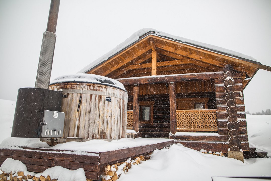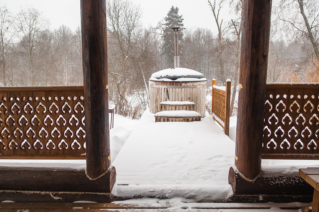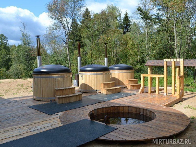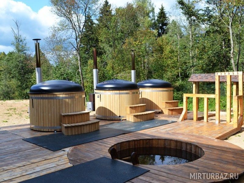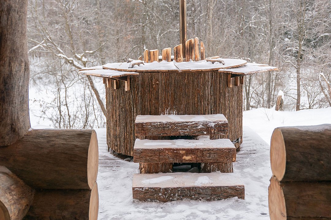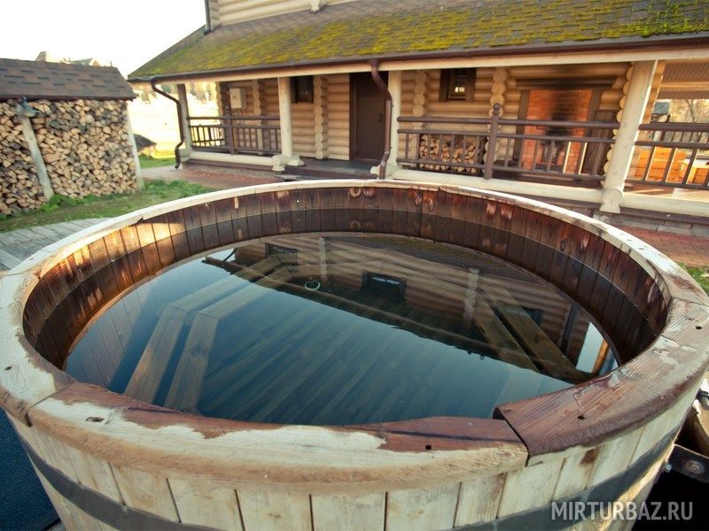 Кедровая купель под открытым небом с теплой водой 38-43 °C