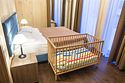 Для детей в отеле ежедневно работает игровая комната с настольными играми, есть открытая площадка с горками, предусмотрена аренда стульчиков, кроваток и детского спортивного инвентаря, предоставляются услуги няни.