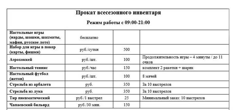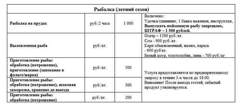 - пейнтбол, рыбалка, мангальные площадки, услуги ресторана