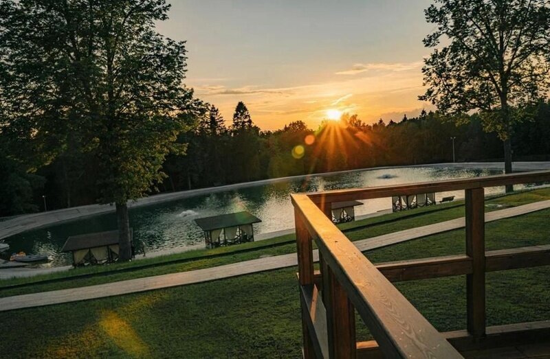 Семейный отдыхДостоинстваПрекрасное местоположение, окруженное лесом, с живописным озером рядом. Домики чистые и уютные, персонал приветливый.Территория постоянно убирается, везде чистота и порядок. На территории есть несколько ресторанов - мы завтракали в итальянском (меню очень понравилось), а ужинали в "Избе", где было вкусно и по приемлемым ценам. Для детей здесь настоящий рай - несколько детских площадок, веревочный парк, а еще есть зоопарк, где олени подходили прямо к нашему домику! Также нам понравился музей ретро автомобилей, небольшой, но с интересными экспонатами. Для взрослых есть несколько бассейнов, один из которых частично под открытым небом. Мы прекрасно провели время, спасибо!