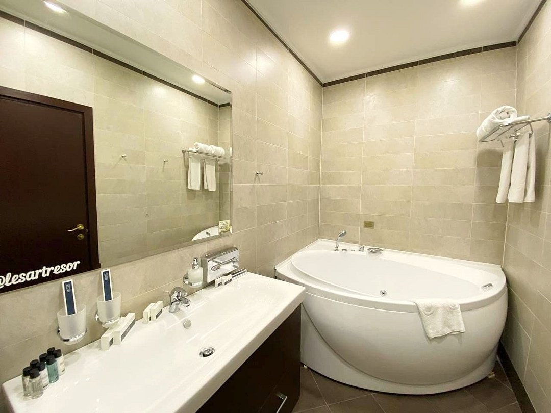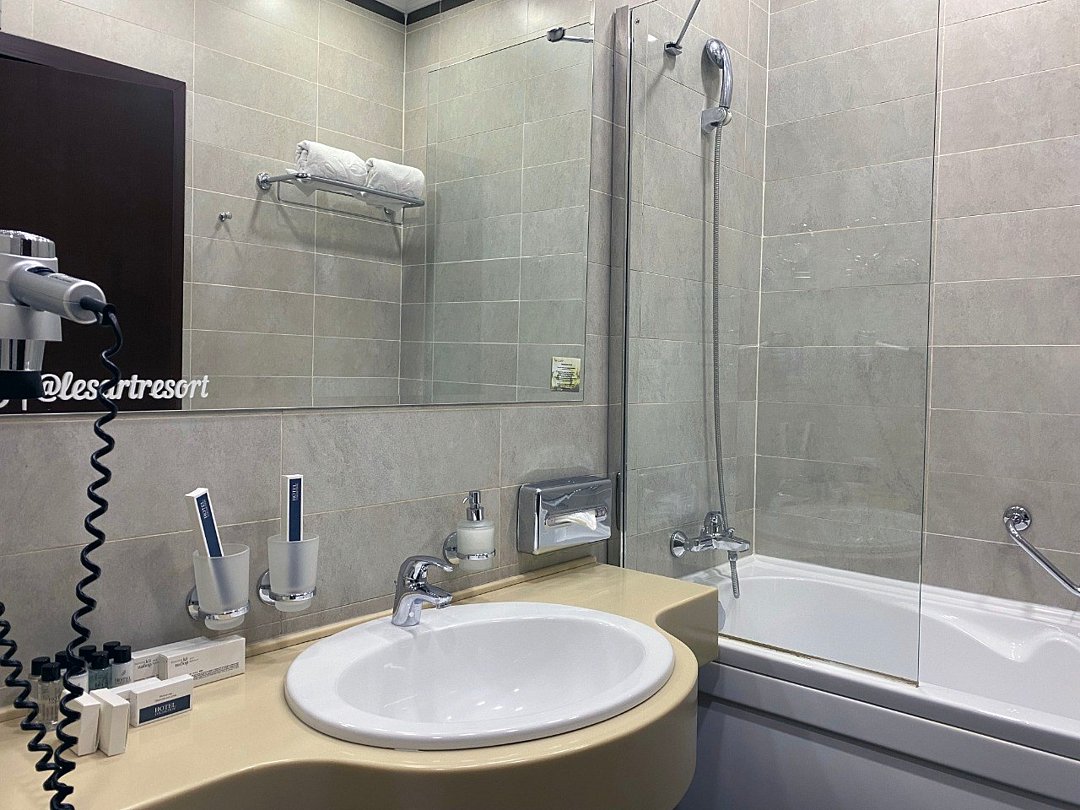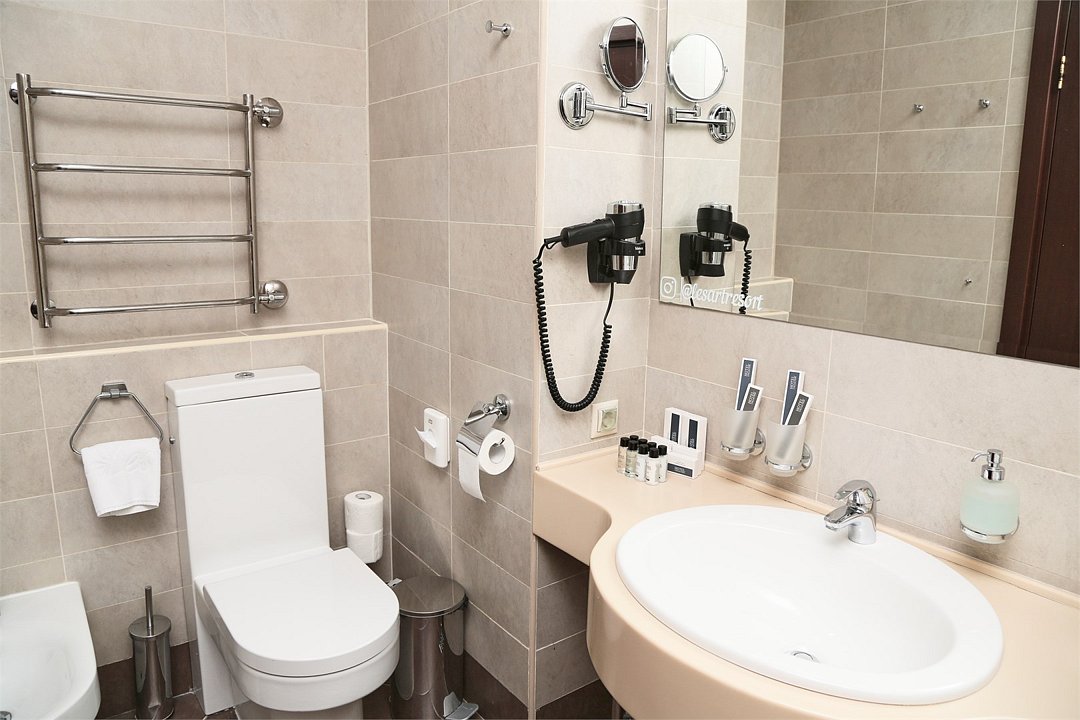 Для Вашего комфортного пребывания ванная комната номера оснащена джакузи. Номера оборудованы сейфом, мини-баром, халатами и тапочками, феном, набором СПА-косметики.